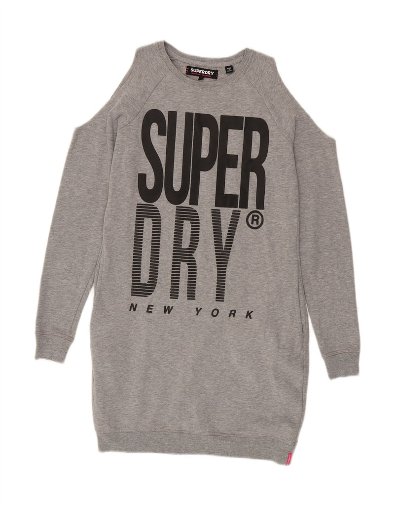 SUPERDRY Womens Oversized Graphic Sweatshirt Jumper Dress UK 6 XS Grey