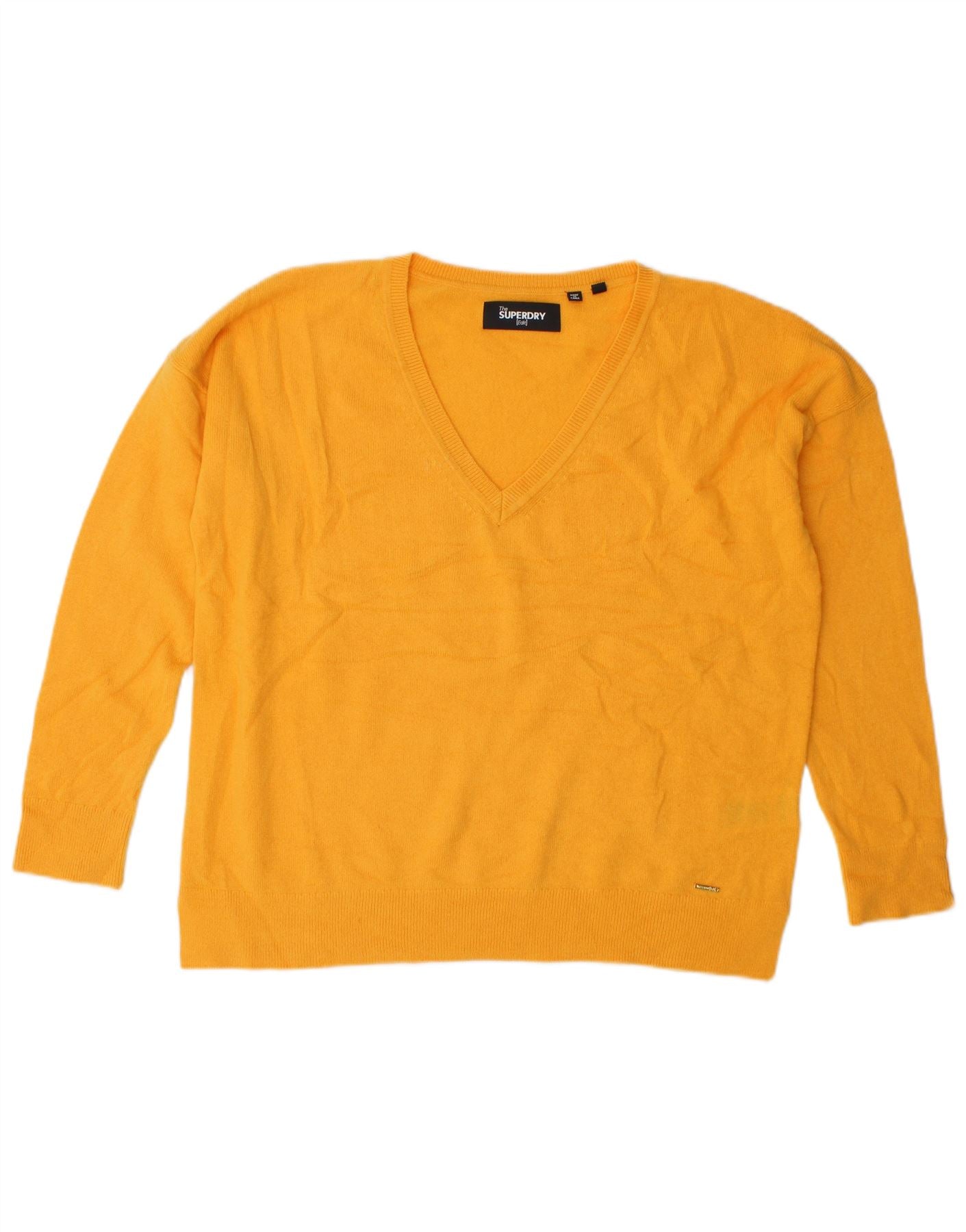 SUPERDRY Pulover cu decolteu în V supradimensionat pentru femei UK 10 Lână galbenă mică