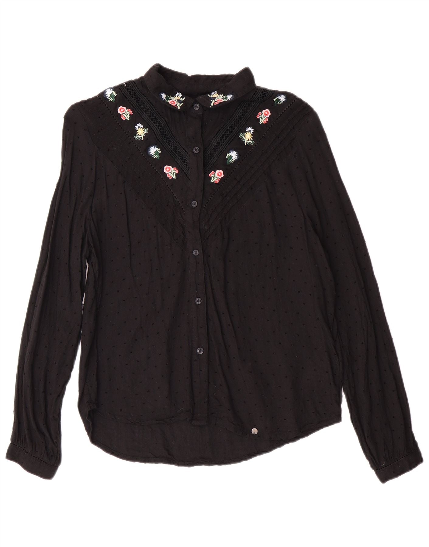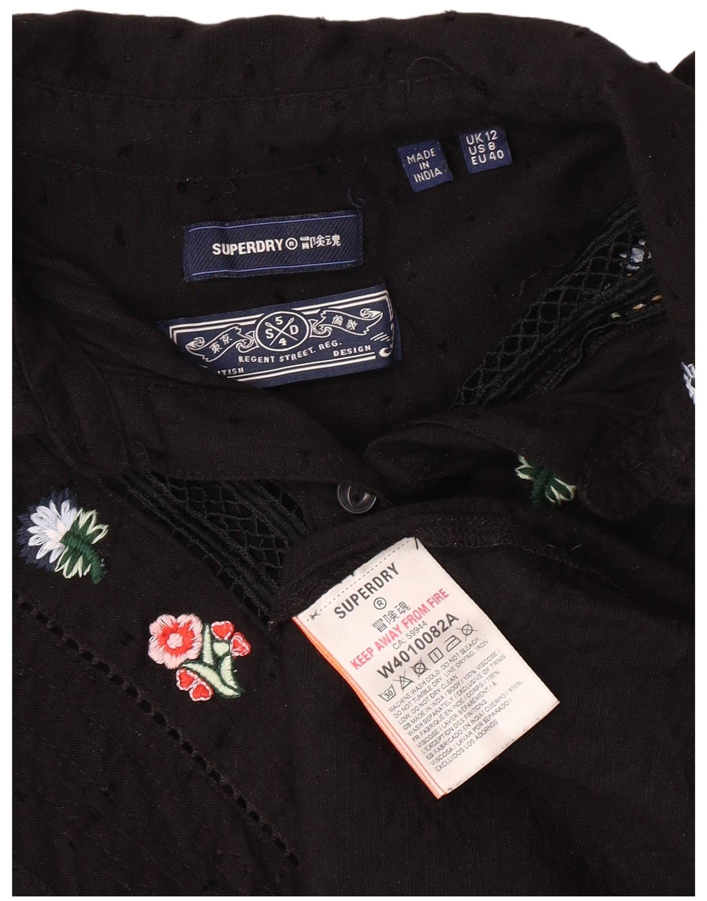 Bluză cămașă pentru femei SUPERDRY UK 12 Medium Black Floral Viscose