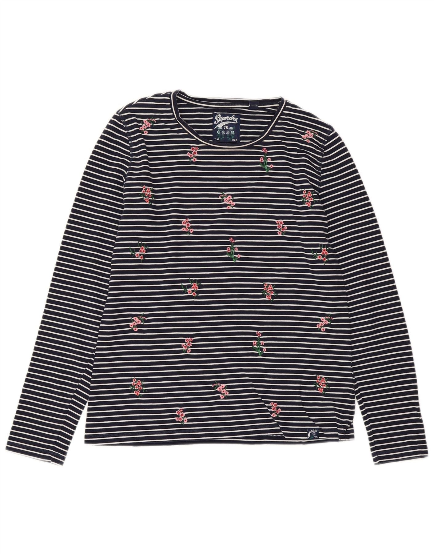 SUPERDRY Top pentru femei cu mânecă lungă UK 10 mic, bleumarin, bumbac cu dungi
