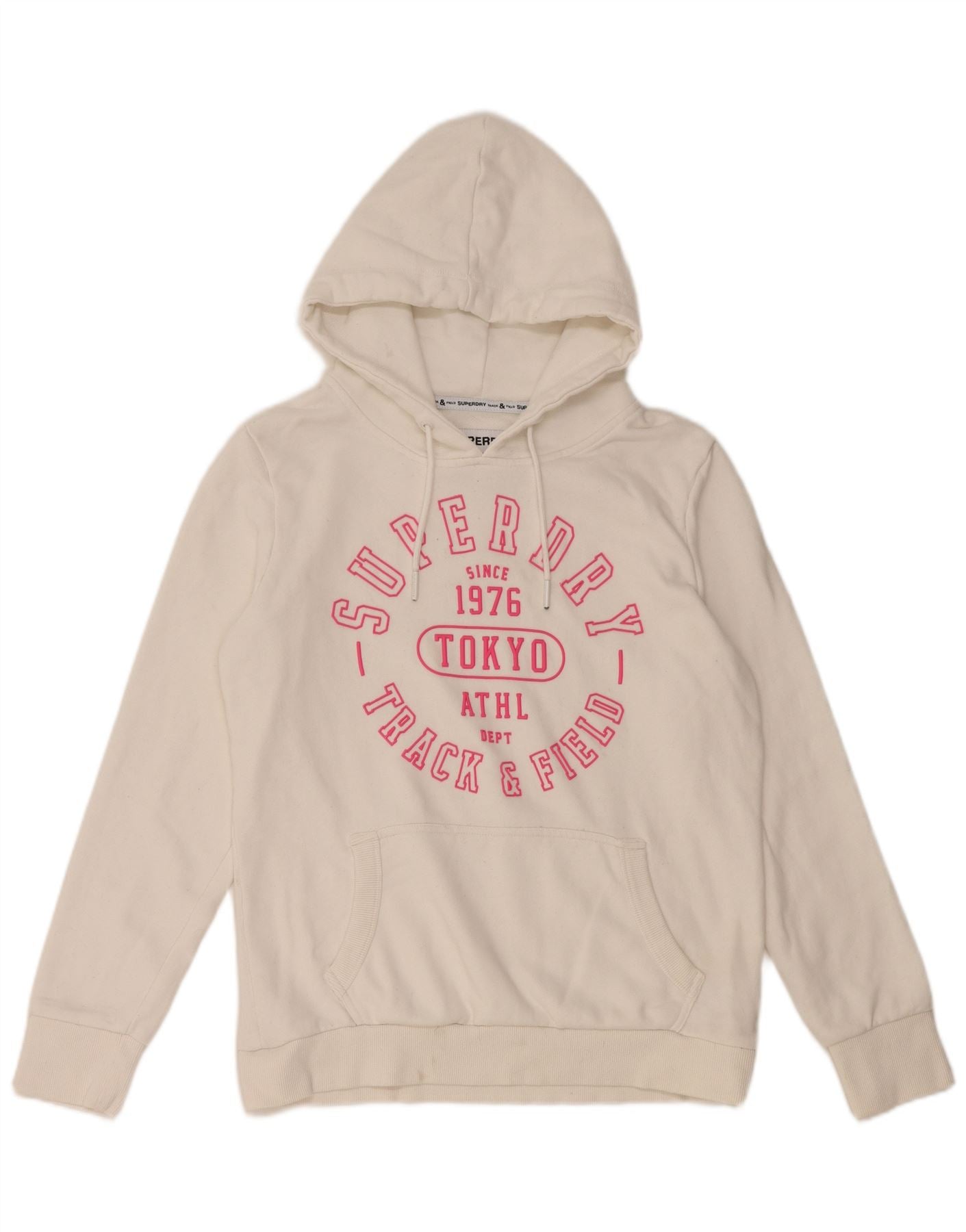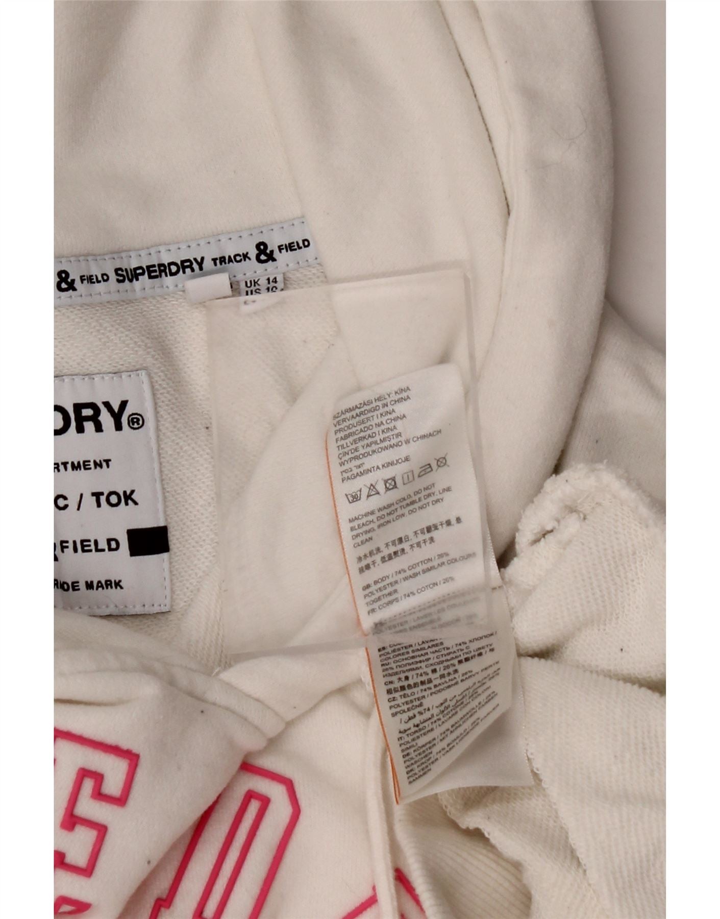 SUPERDRY Pulover cu glugă cu grafic pentru atletism și teren pentru femei UK 14, mare, alb