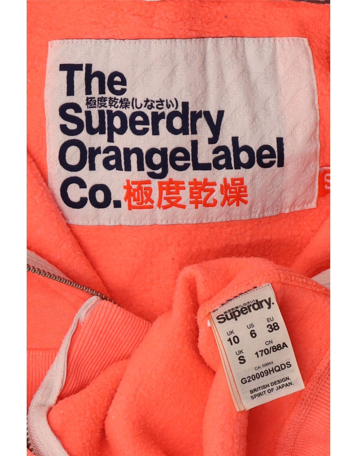 SUPERDRY Womens Zip Hoodie Sweater UK 10 Small Orange Flecked Polyester