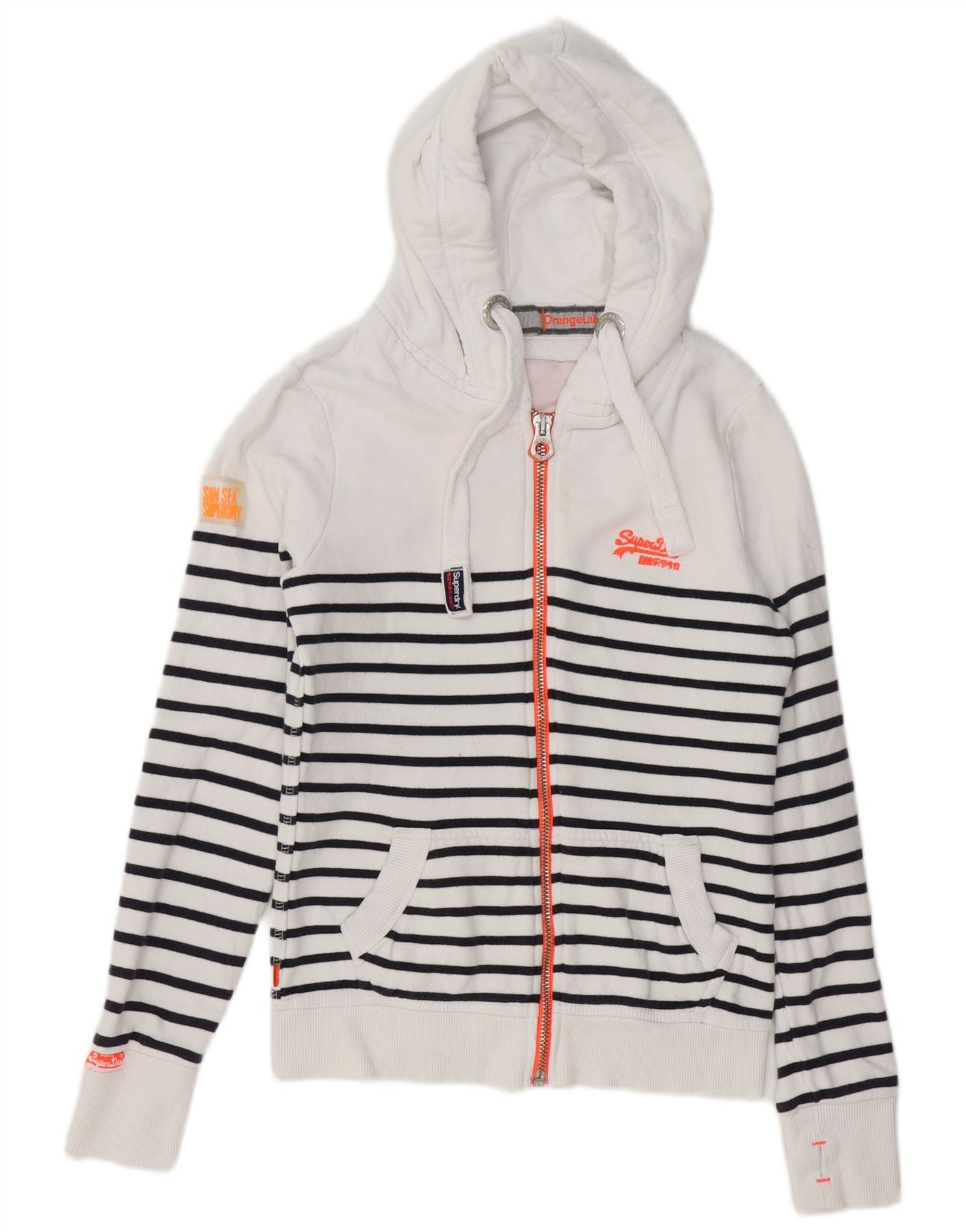 SUPERDRY Pulover cu capota cu fermoar pentru femei UK 6 XS Bumbac cu dungi albe