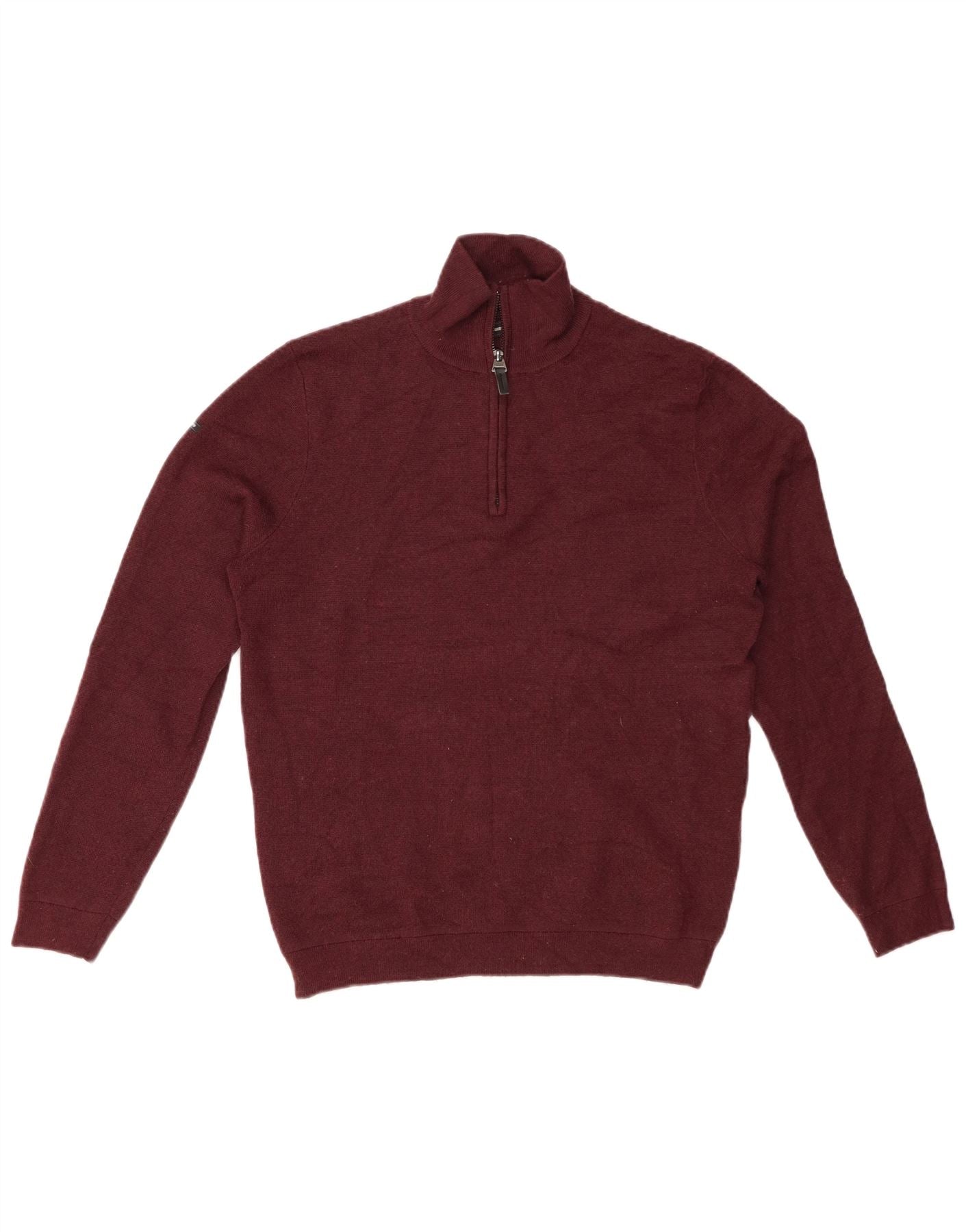 Pulover pentru femei SUPERDRY cu fermoar și gât UK 16 Lână merinos burgundy mare