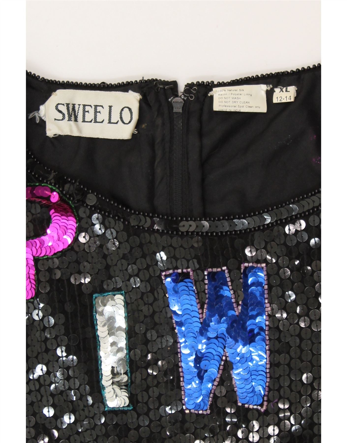 SWEELO Rochie cu teacă grafică pentru femei UK 18 XL Mătase neagră