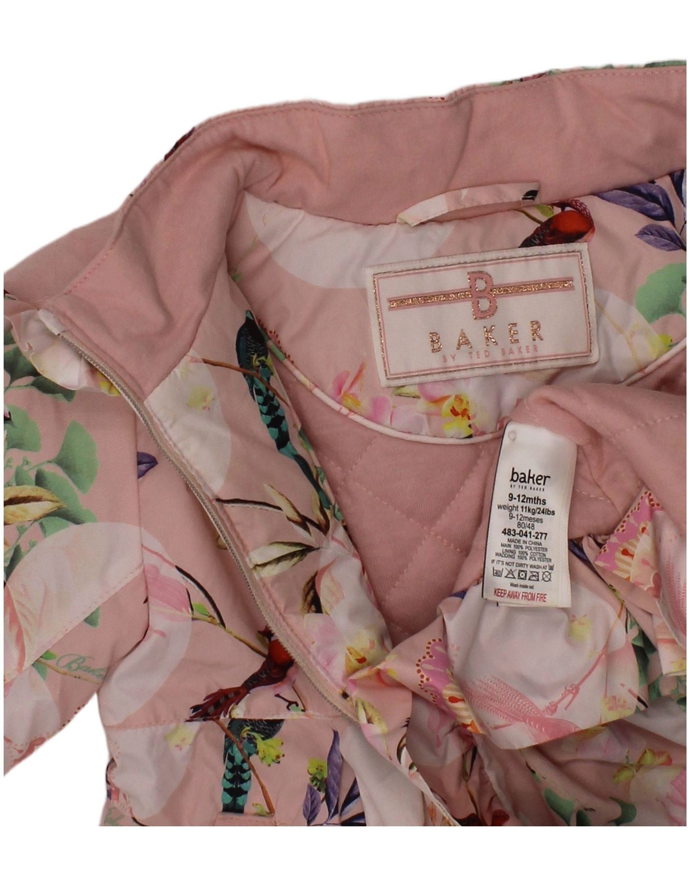TED BAKER Baby Girls Hooded Padded Jacket 9-12 Months Pink Floral