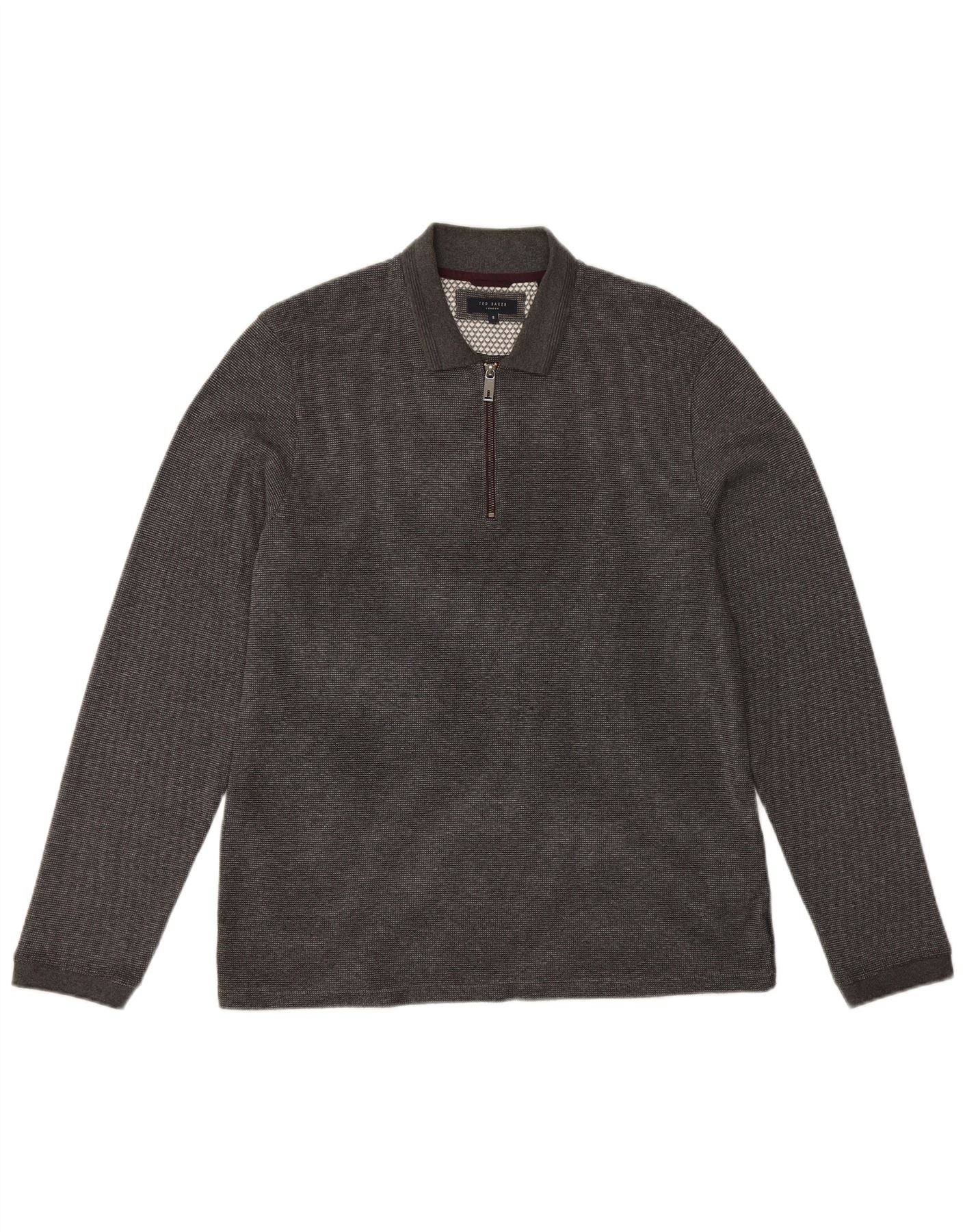 TED BAKER Tricou polo London cu mânecă lungă pentru bărbați, mărimea 5 XL, bumbac gri