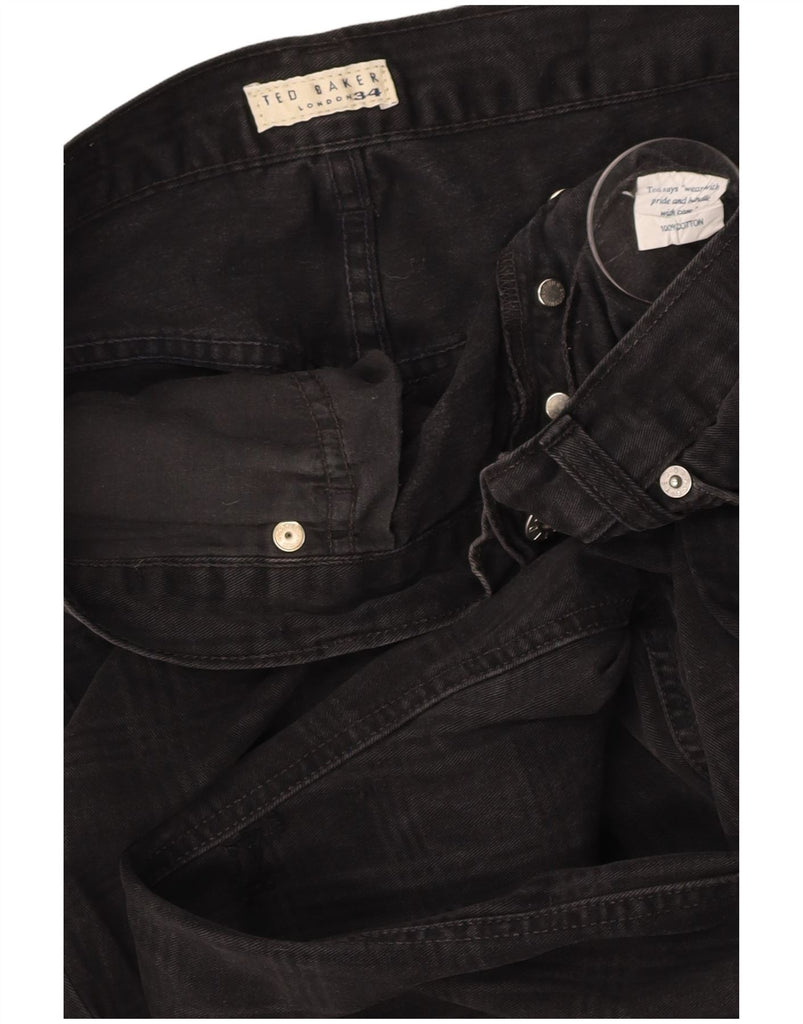 TED BAKER Mens Straight Casual Trousers W34 L33 Black Check Cotton