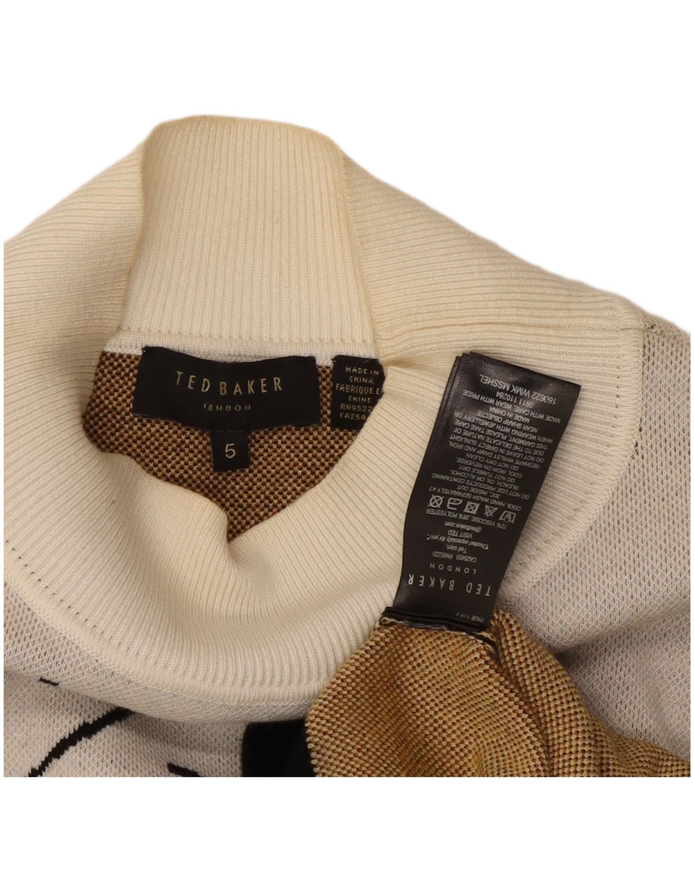 TED BAKER Womens Turtle Neck Jumper Sweater Size 5 XL Black Colourblock