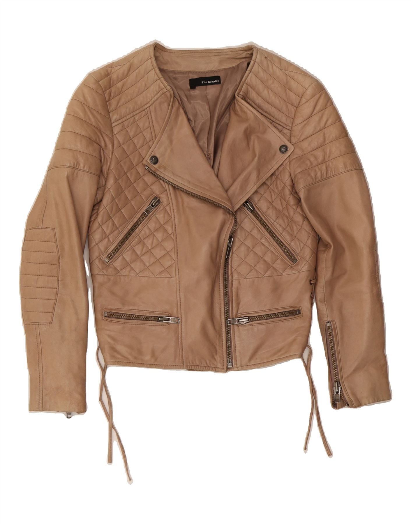 THE KOOPLES Womens Leather Biker Jacket UK 12 Medium Brown Lambskin