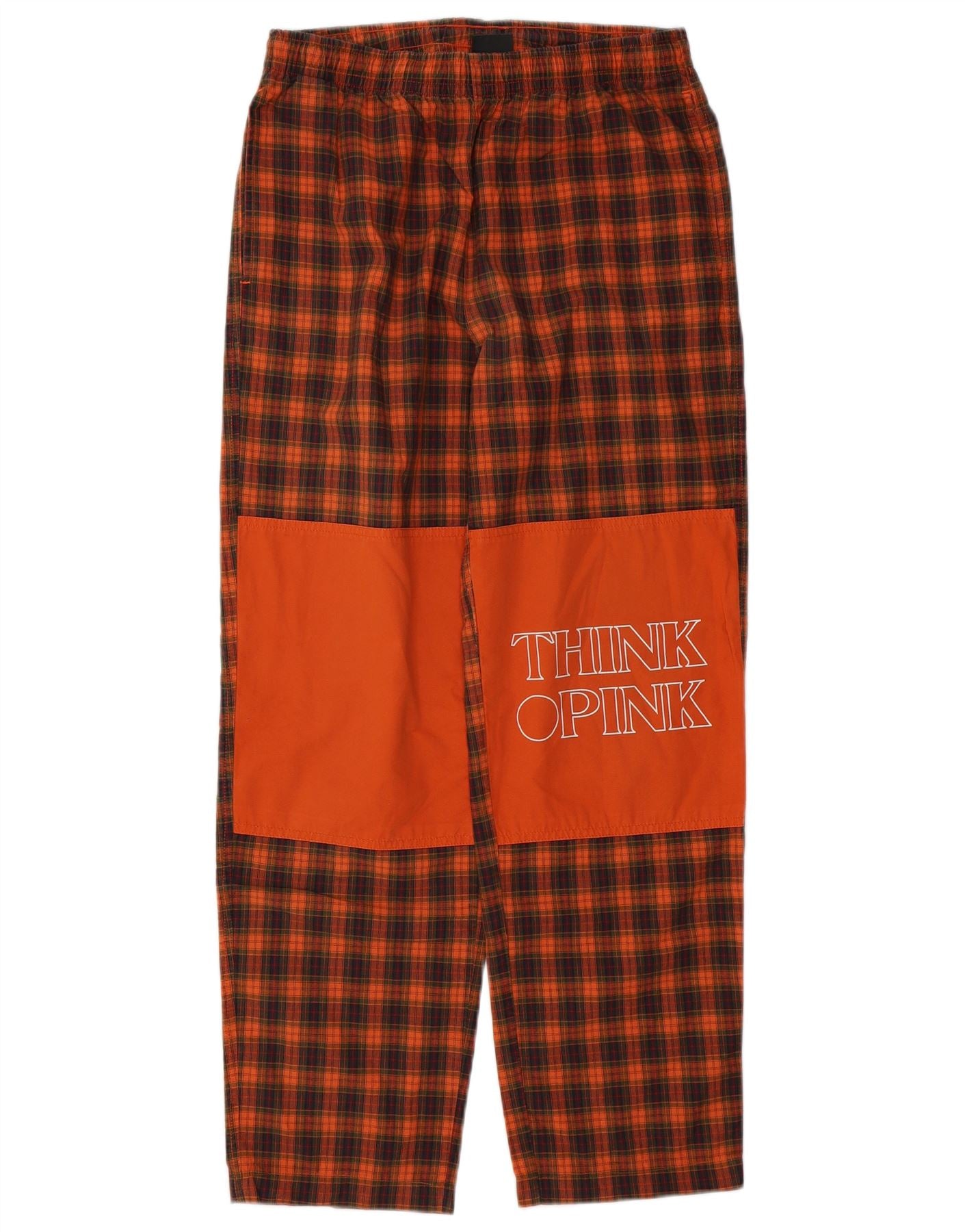 Pantaloni de trening cu grafică pentru bărbați Think Pink, bumbac cu carouri mici, portocalii