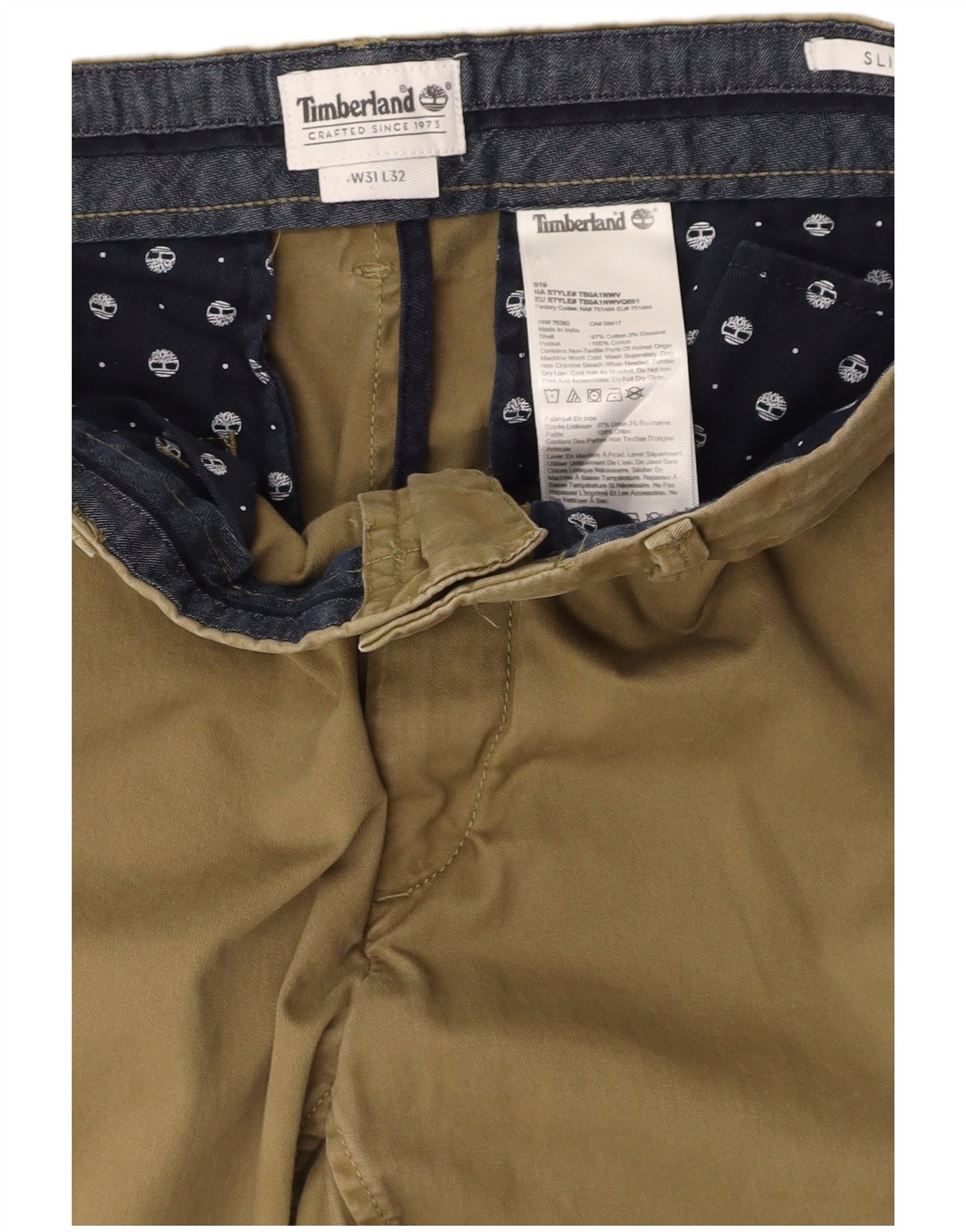 TIMBERLAND Pantaloni chino slim pentru bărbați L31 L29 bumbac kaki