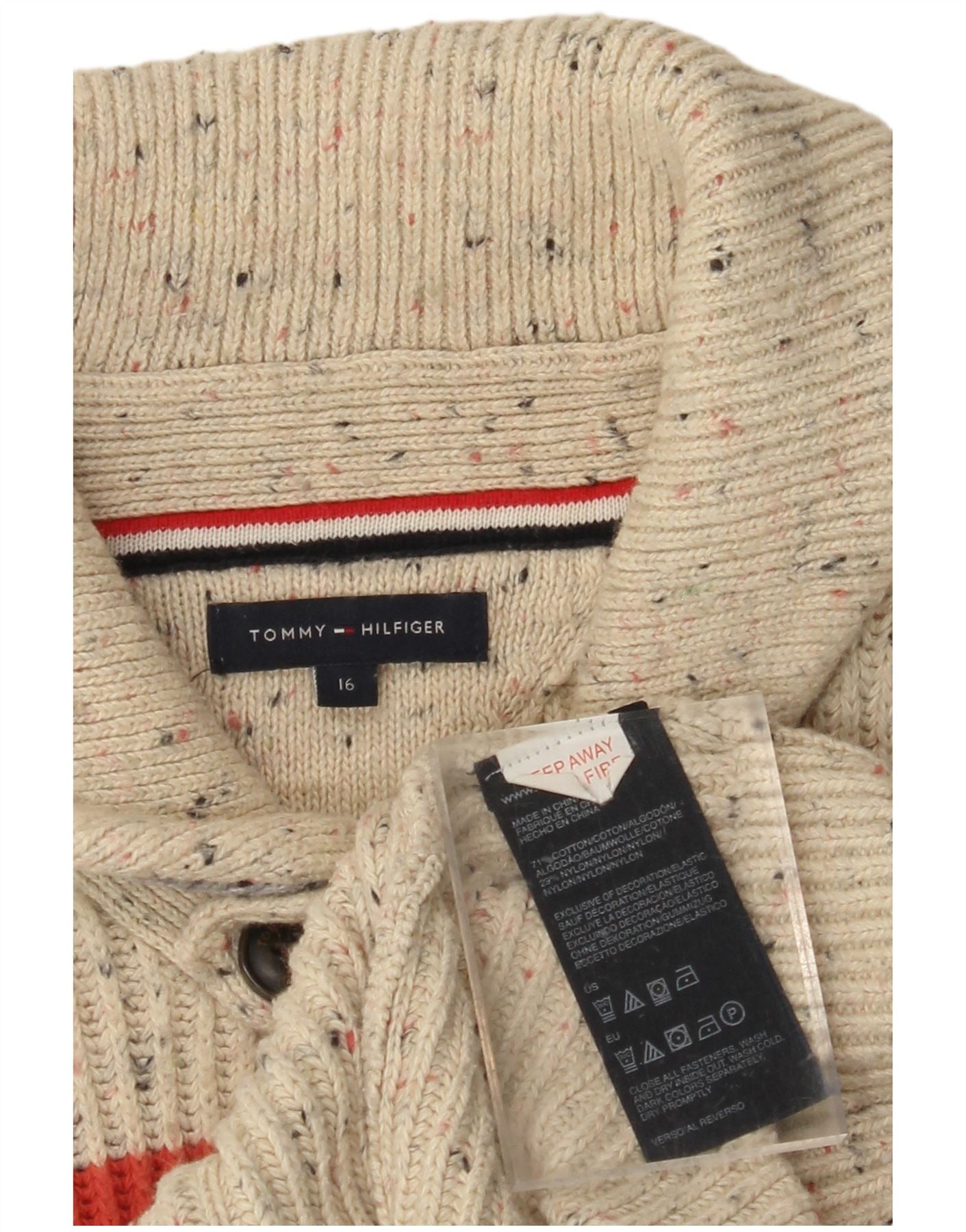 TOMMY HILFIGER Pulover cardigan pentru băieți 15-16 ani, bej, bumbac color bloc