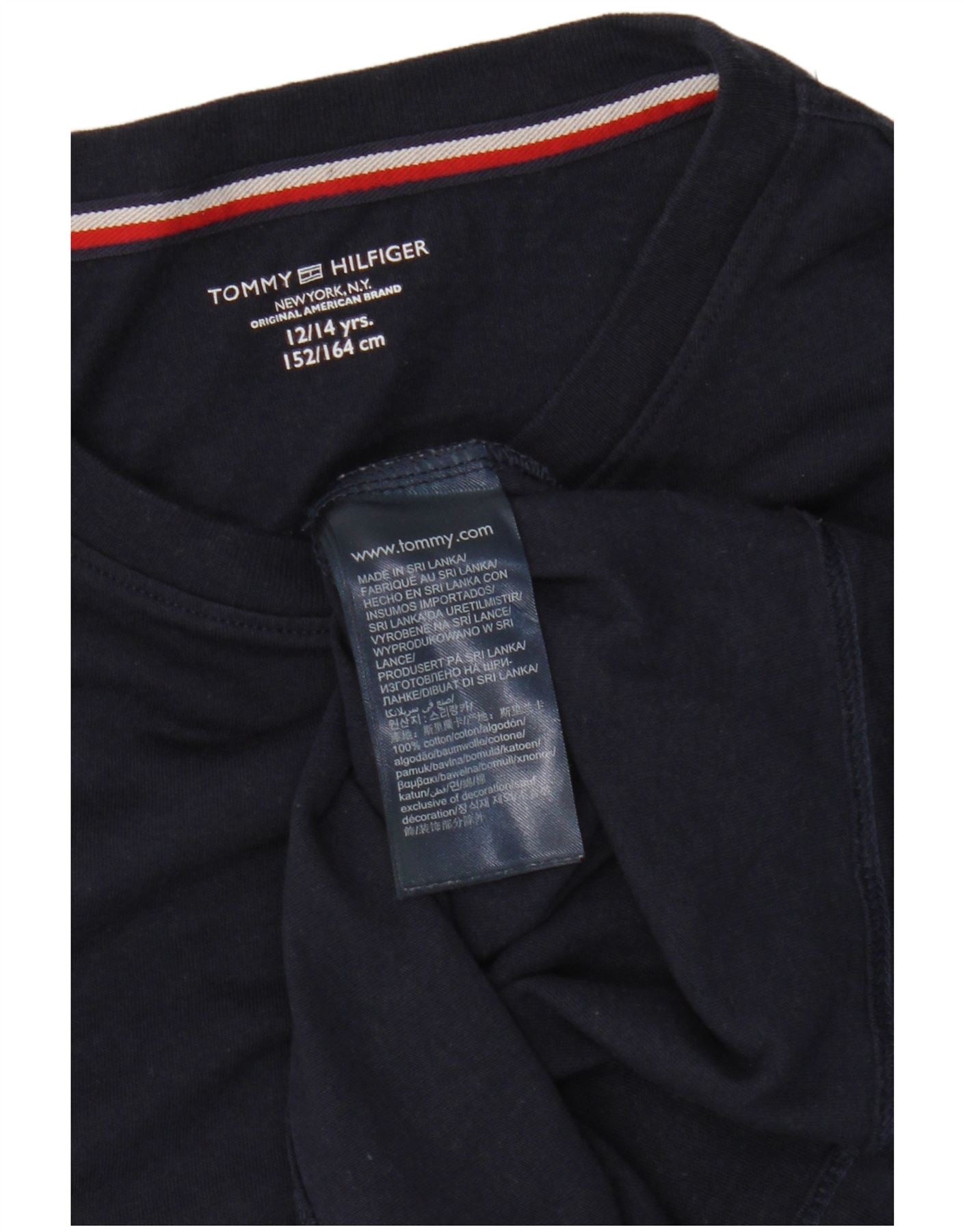 TOMMY HILFIGER Boys T-Shirt Top 12-13 Years Navy Blue Cotton