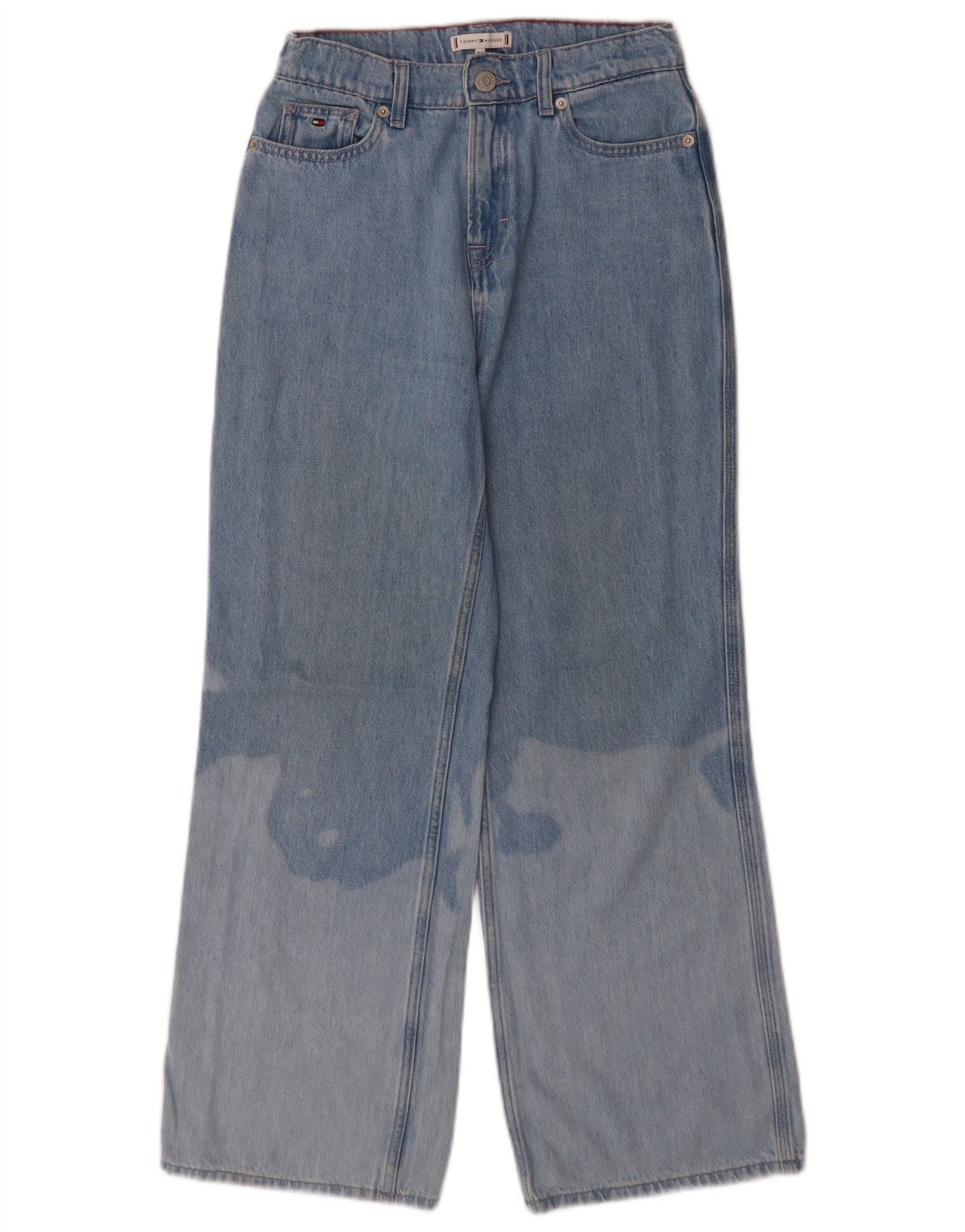 TOMMY HILFIGER Blugi pentru fete, cu spălare acidă, cu picioare largi, 13-14 ani, W26 L27, albastru
