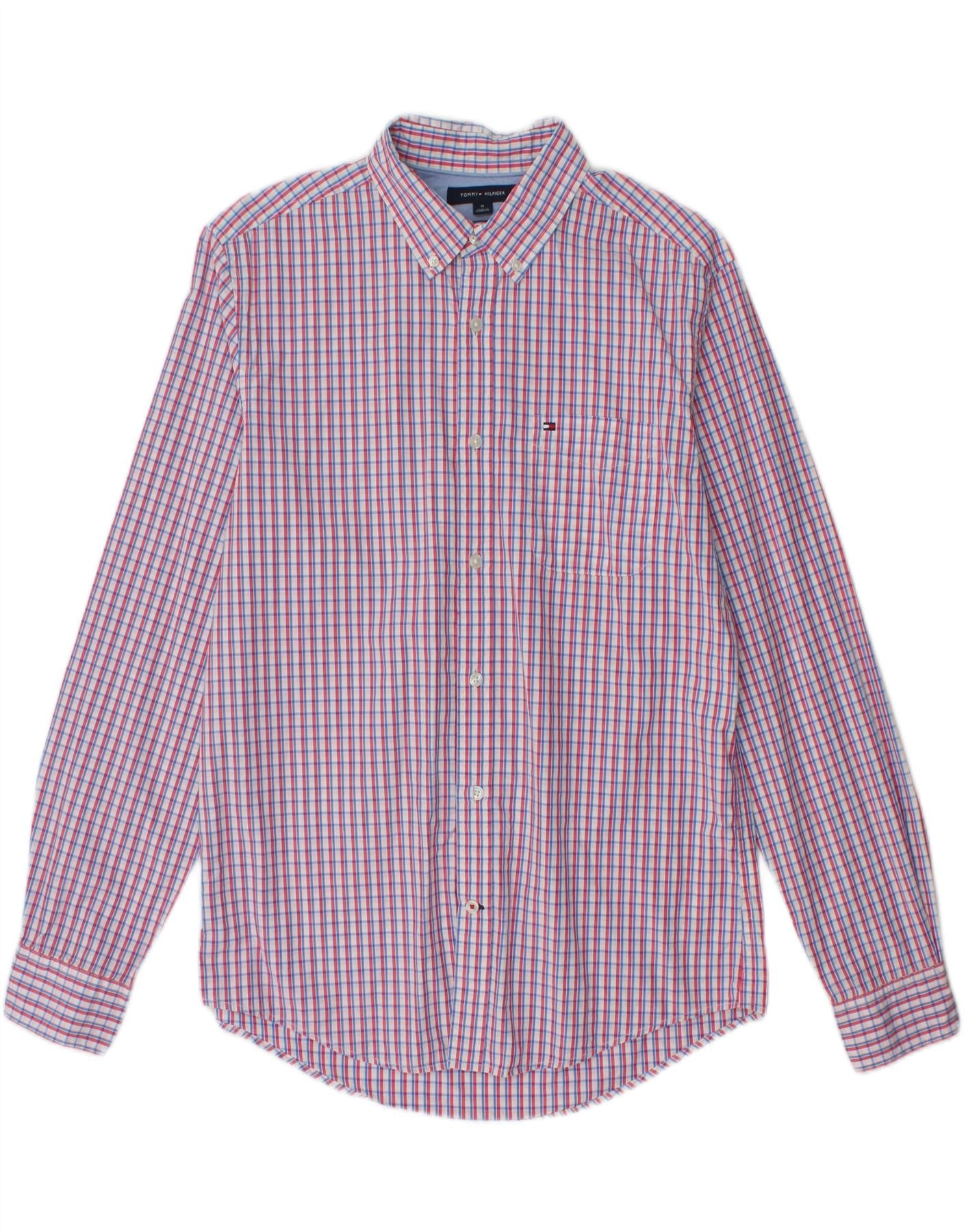 Cămașă pentru bărbați TOMMY HILFIGER anii 80, cu două straturi, bumbac cu carouri multicolore medii