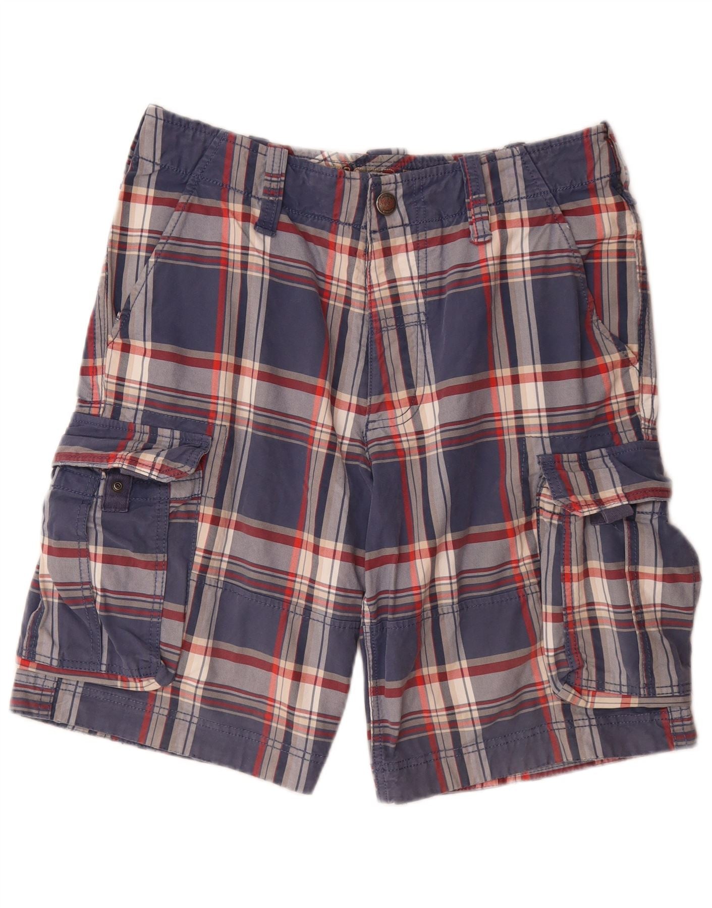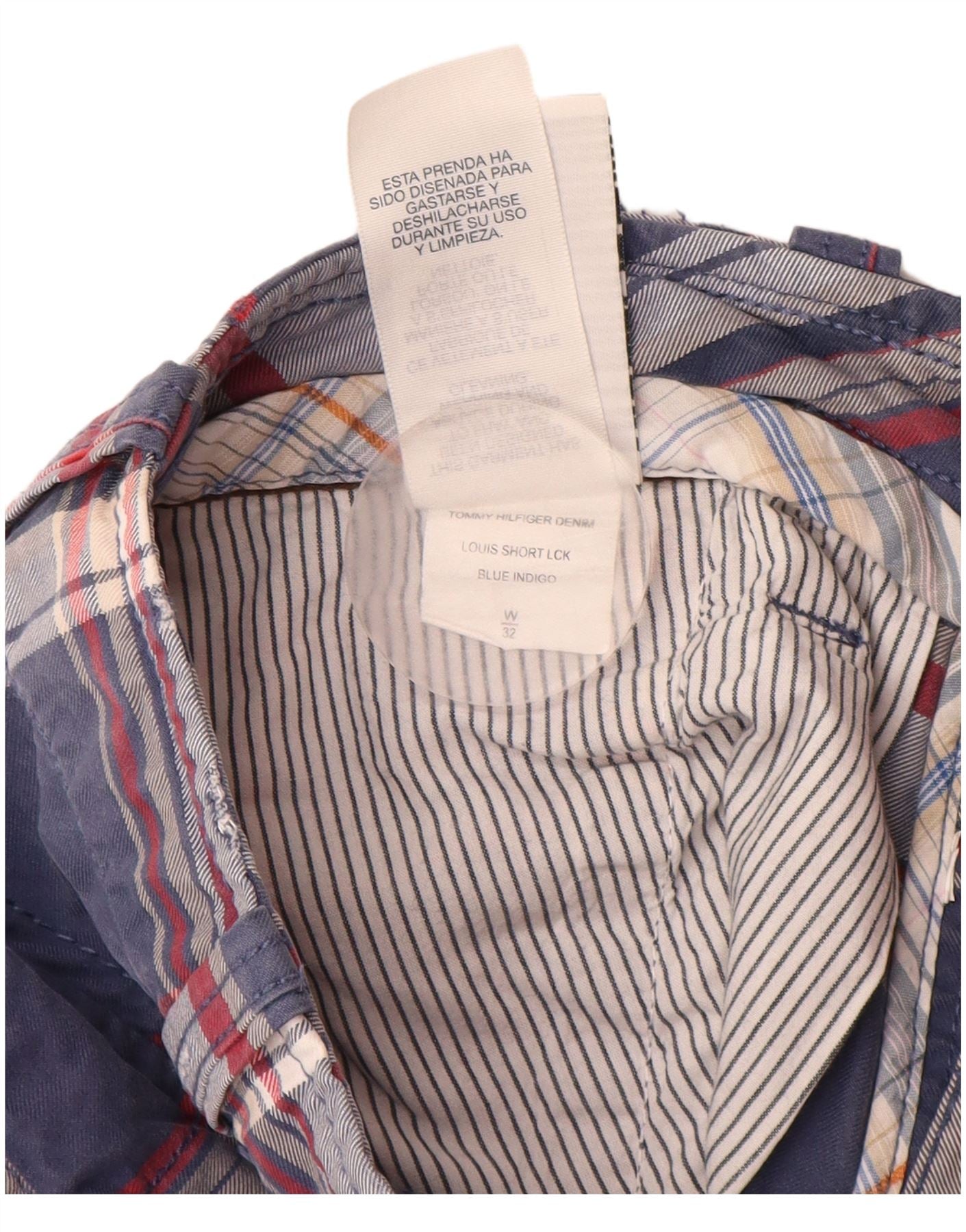 Pantaloni scurti cargo pentru bărbați TOMMY HILFIGER W32, bumbac cu carouri, albastru marin mediu