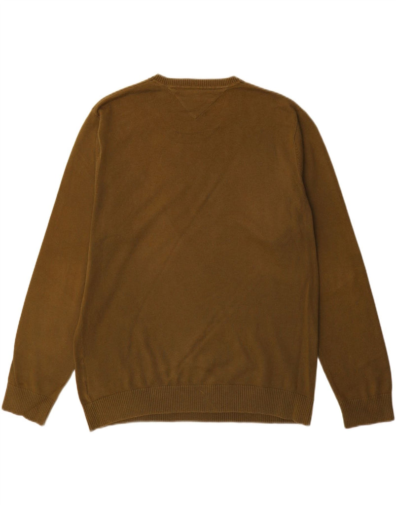 TOMMY HILFIGER Mens Crew Neck Jumper Sweater Large Brown Cotton