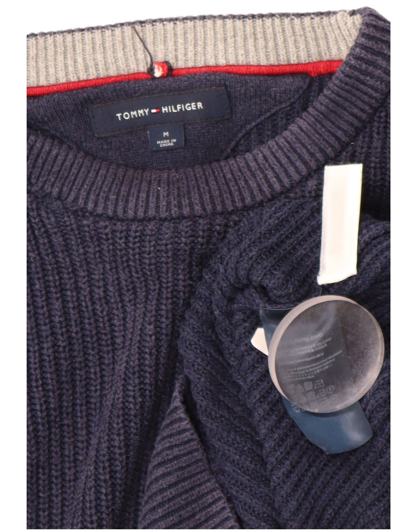 TOMMY HILFIGER Mens Crew Neck Jumper Sweater Medium Navy Blue Cotton