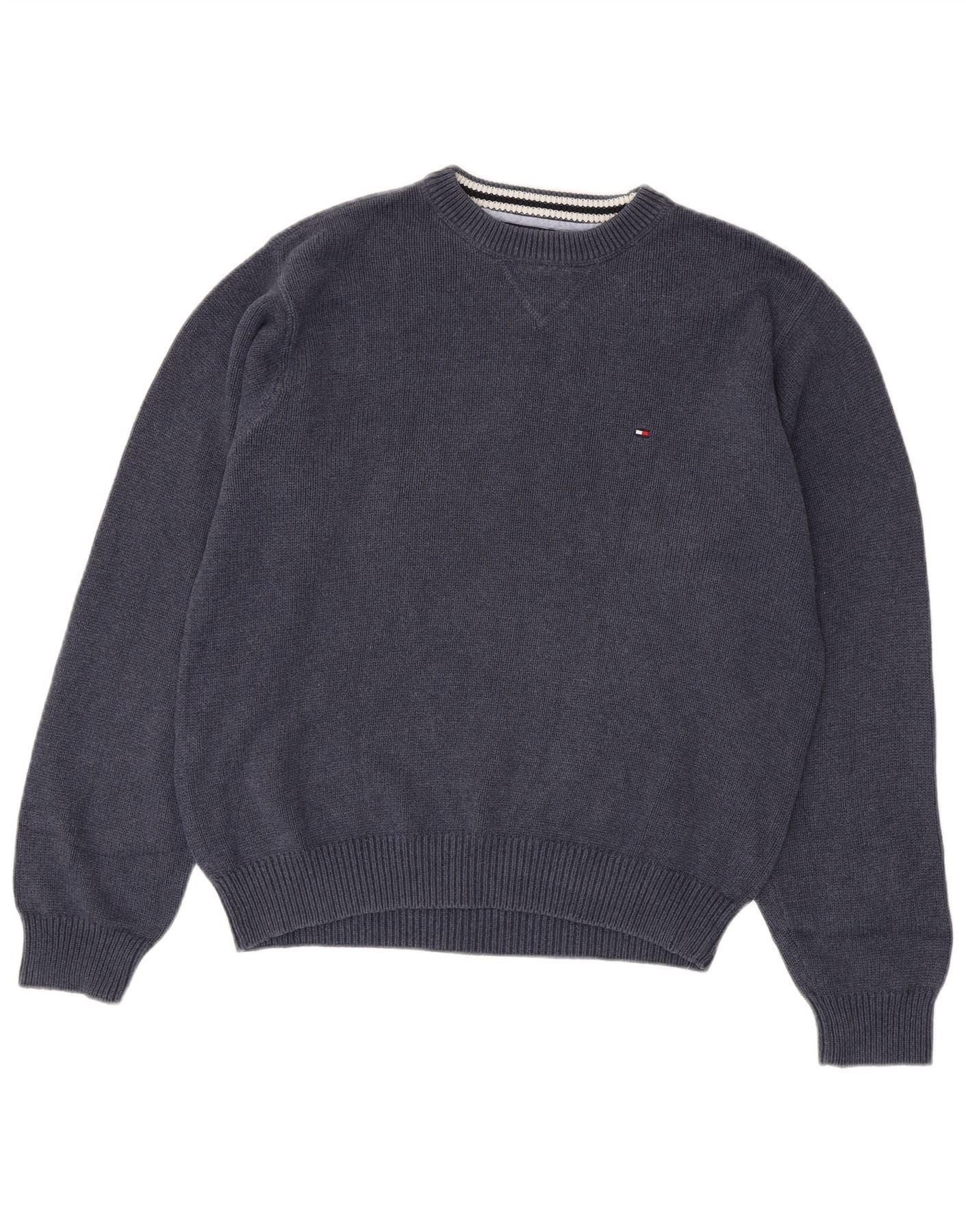 Pulover pentru bărbați TOMMY HILFIGER Pulover cu decolteu mediu, albastru bleumarin, bumbac
