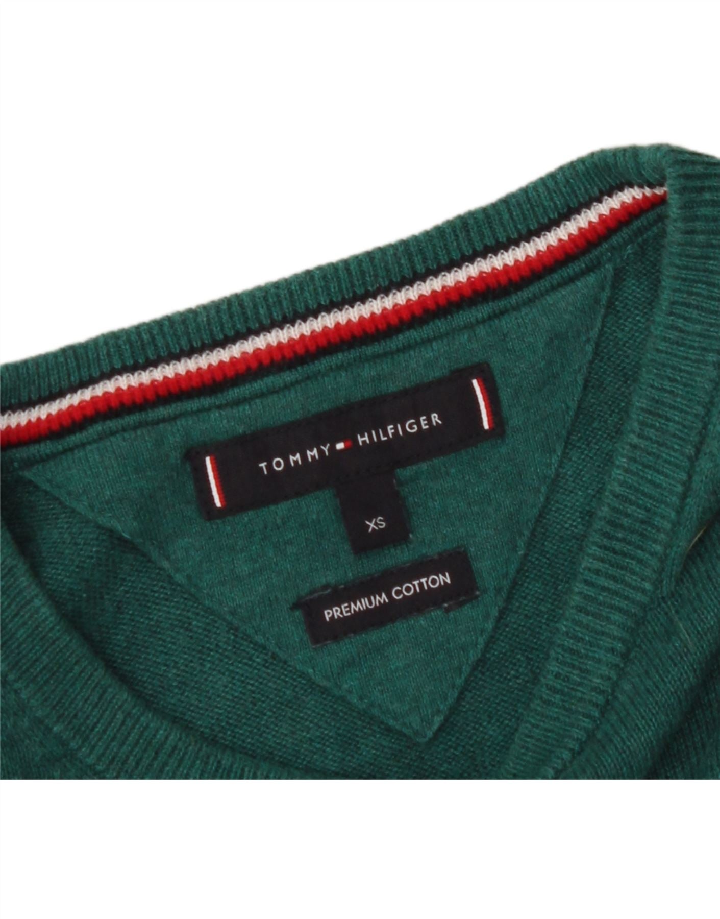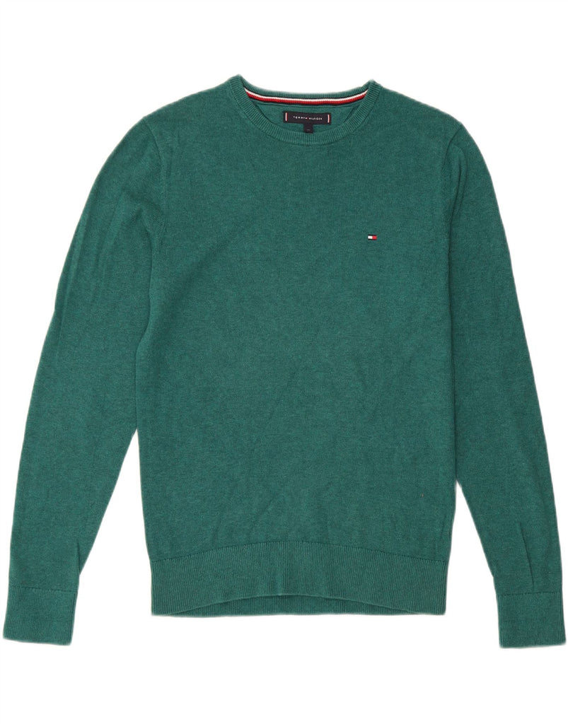 TOMMY HILFIGER Mens Crew Neck Jumper Sweater XS Green Cotton