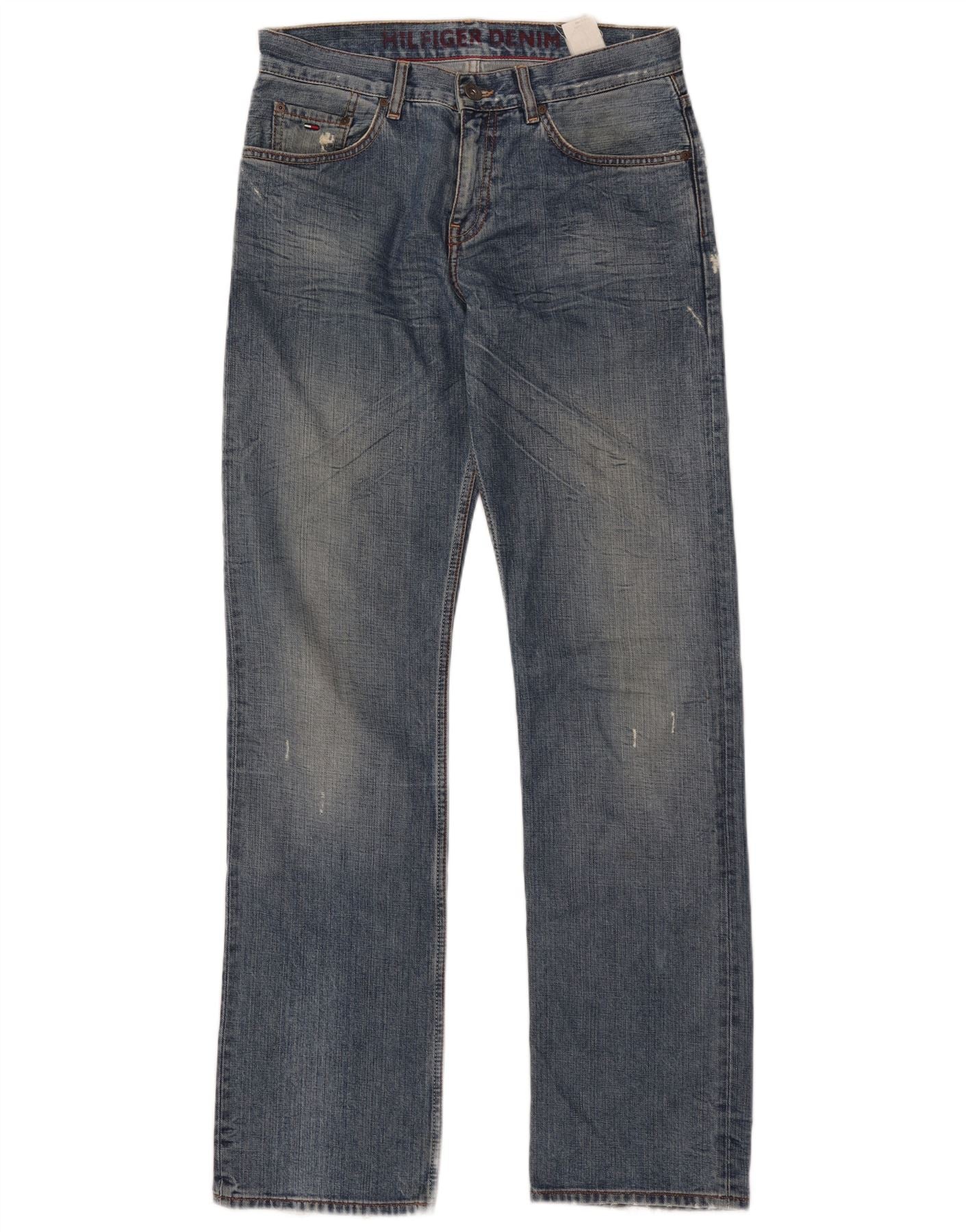Blugi drepți drepți distressed pentru bărbați Tommy Hilfiger W32 L35 albastru