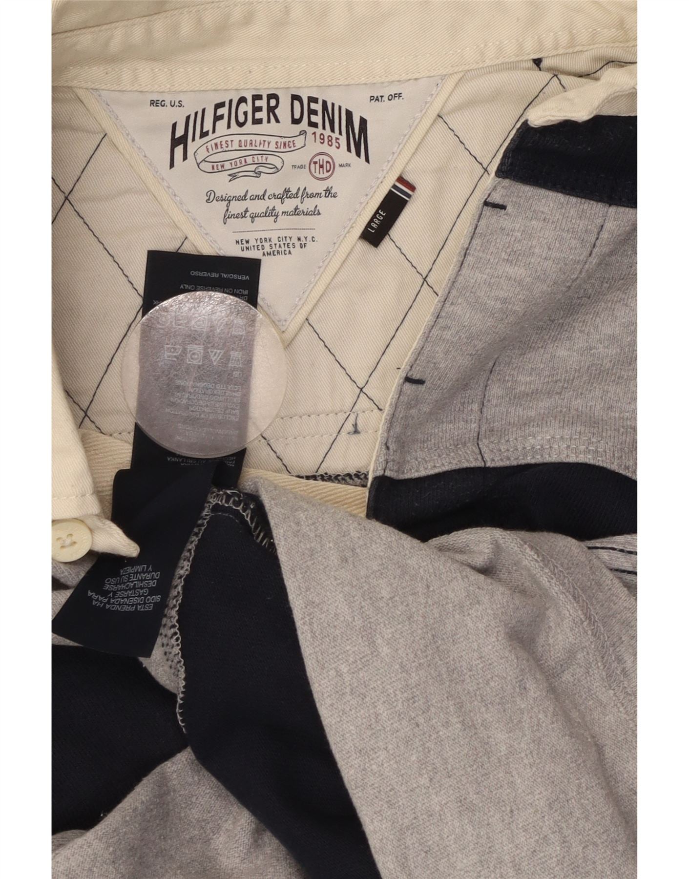 TOMMY HILFIGER Tricou polo grafic rugby pentru bărbați, cu dungi mari, albastru