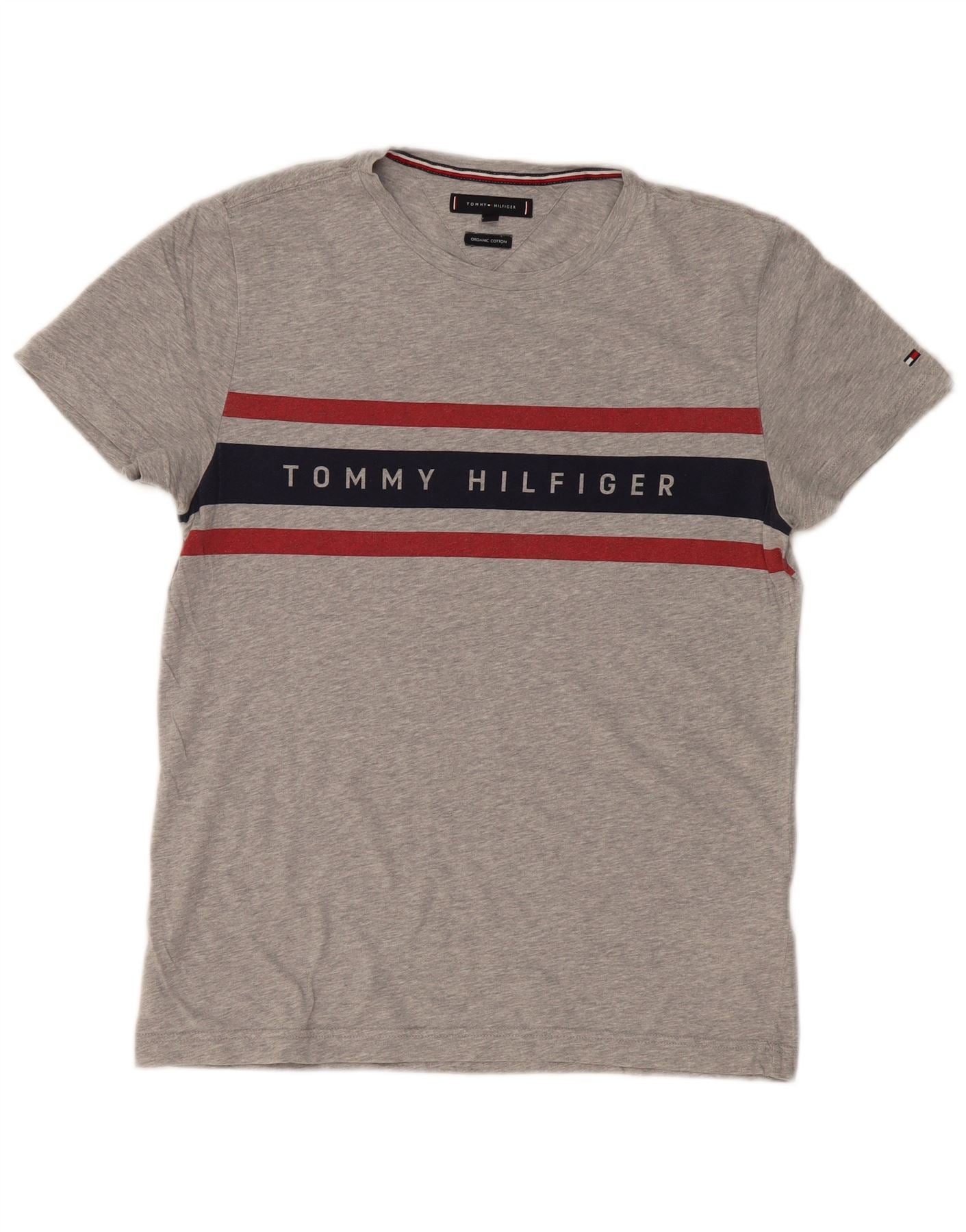 TOMMY HILFIGER Tricou grafic pentru bărbați Top mic, gri, bumbac color bloc