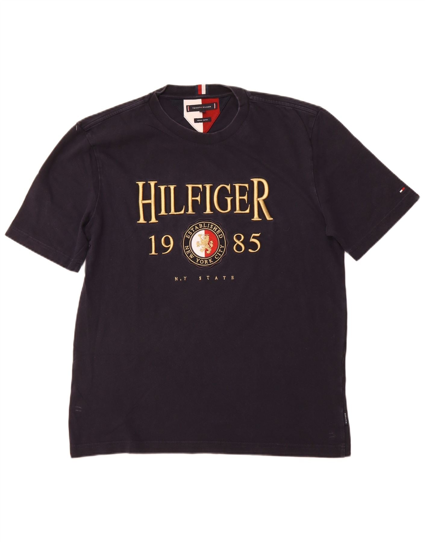 TOMMY HILFIGER Mens Graphic T-Shirt Top XL Navy Blue Cotton