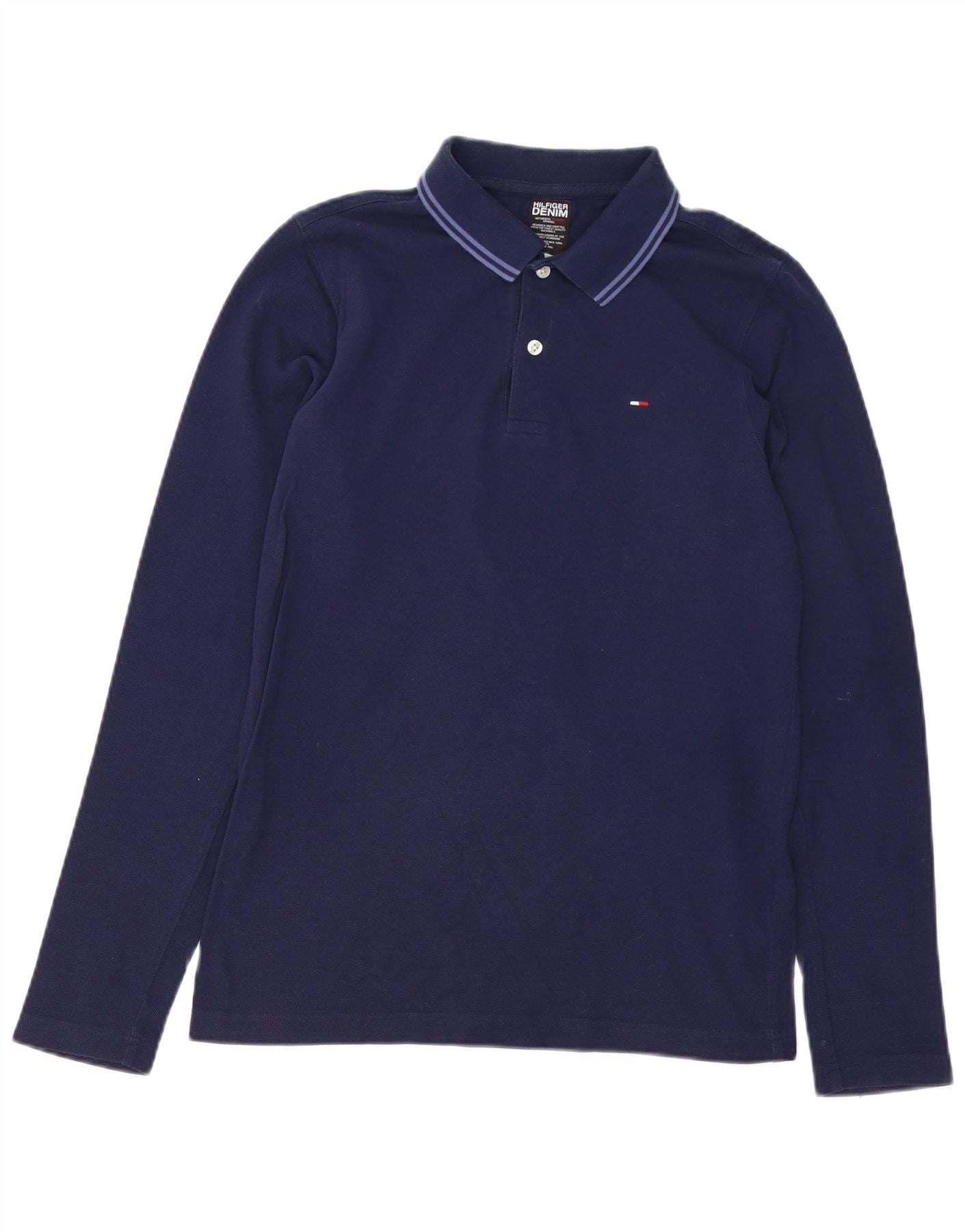 TOMMY HILFIGER Cămașă polo cu mânecă lungă pentru bărbați, bumbac mediu albastru bleumarin