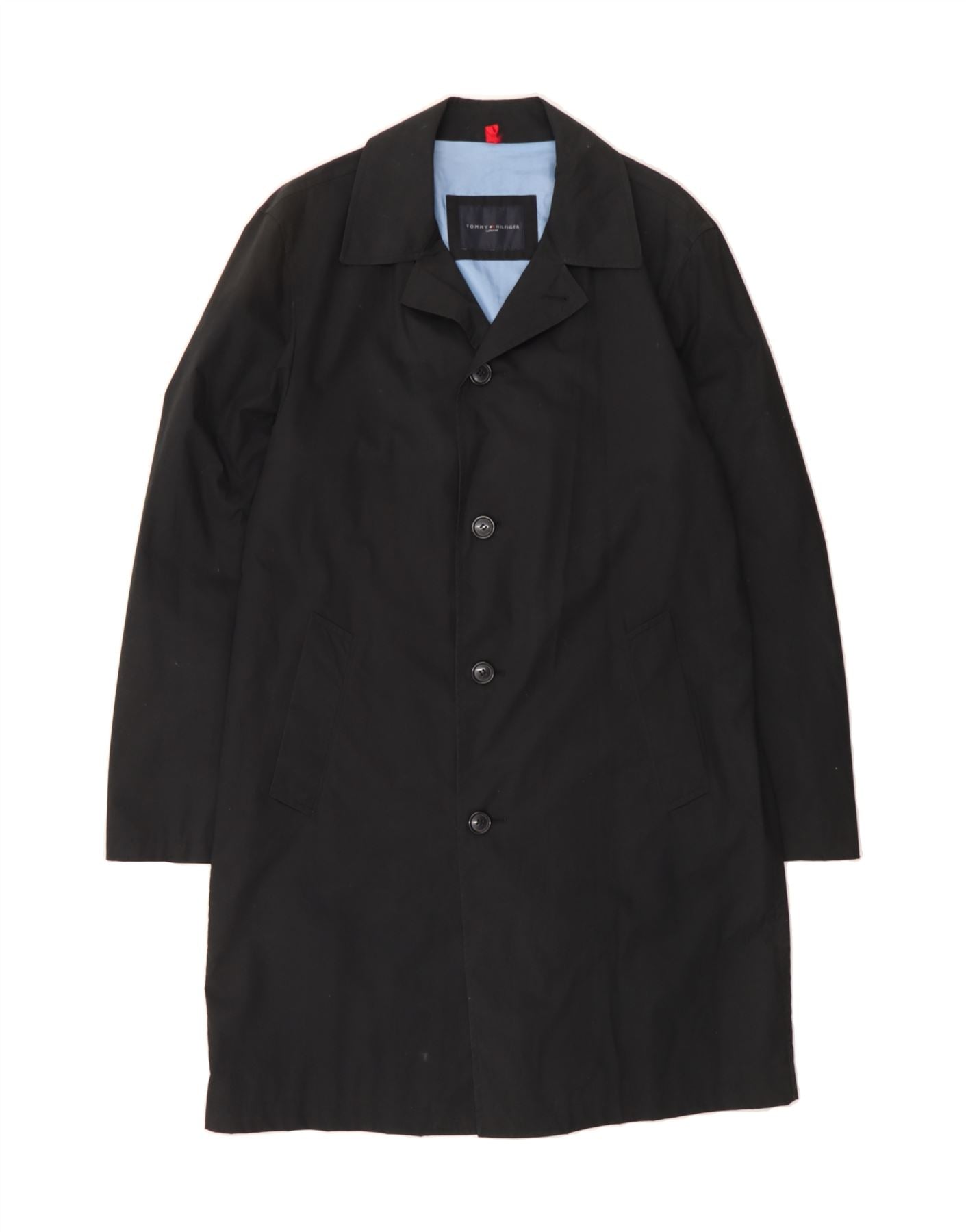 TOMMY HILFIGER Mens Overcoat UK 40 Large Black Cotton