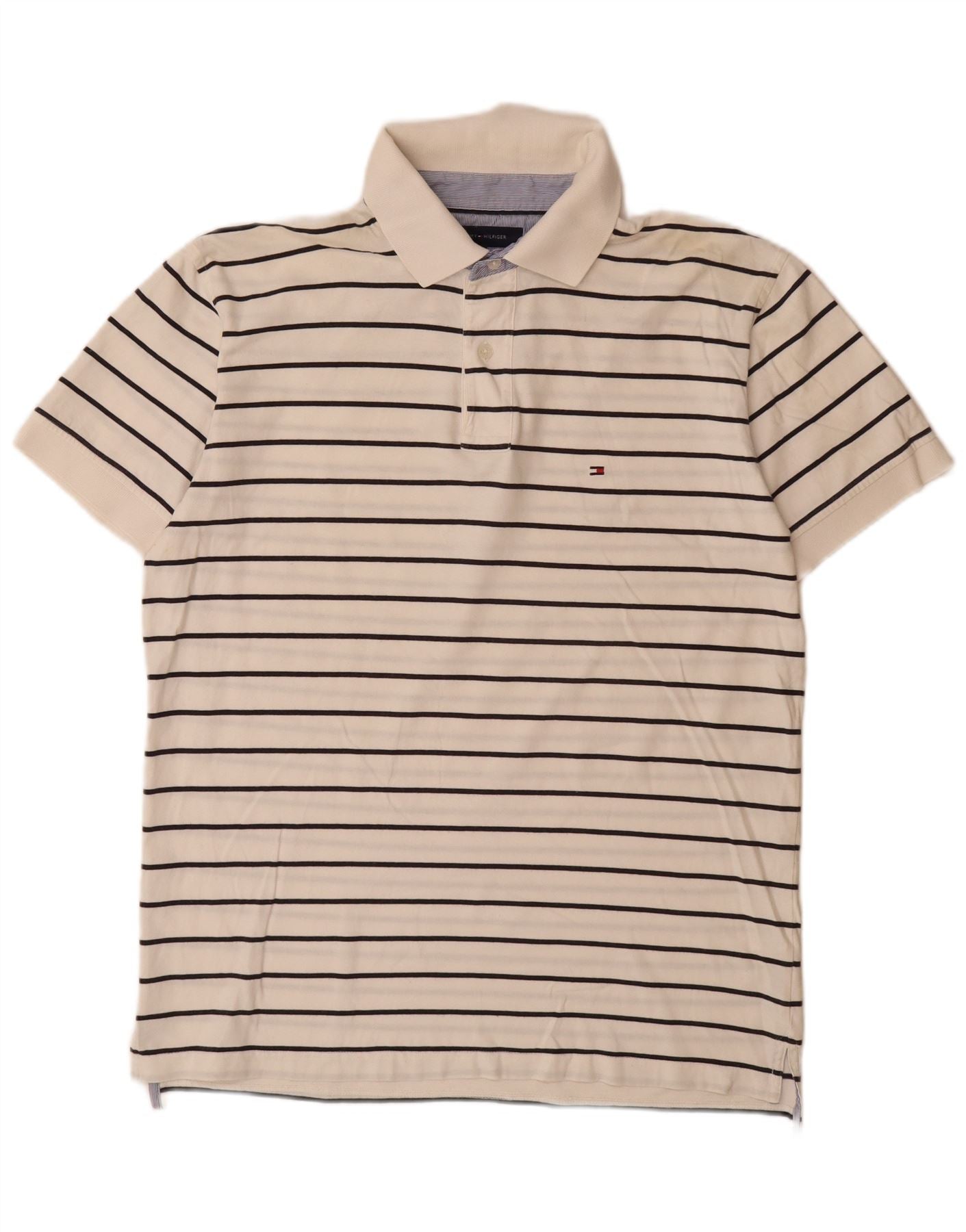 Tricou polo TOMMY HILFIGER pentru bărbați, mare, bumbac cu dungi alb