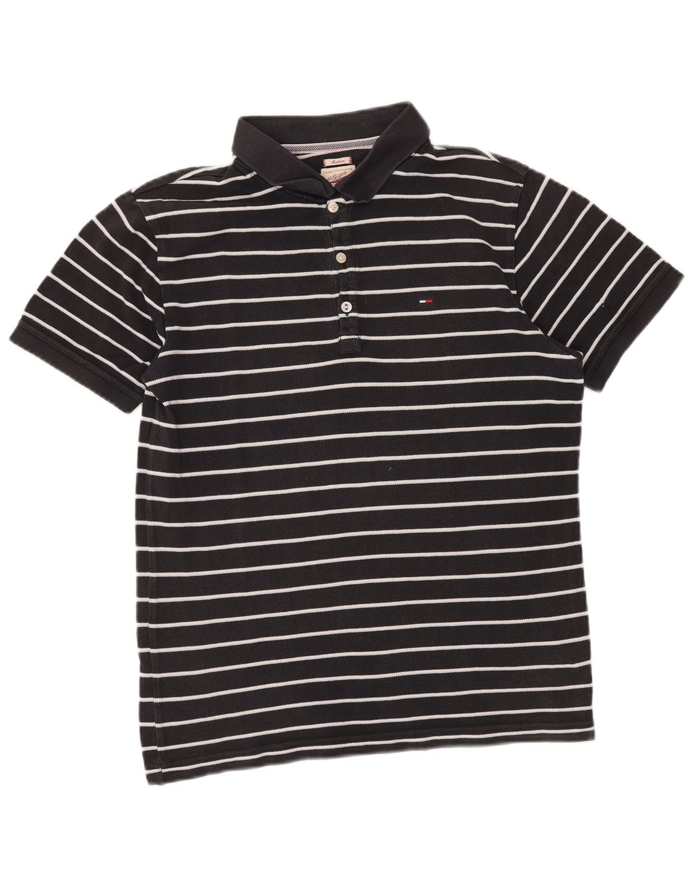 Tricou polo TOMMY HILFIGER pentru bărbați, bumbac cu dungi negre medii