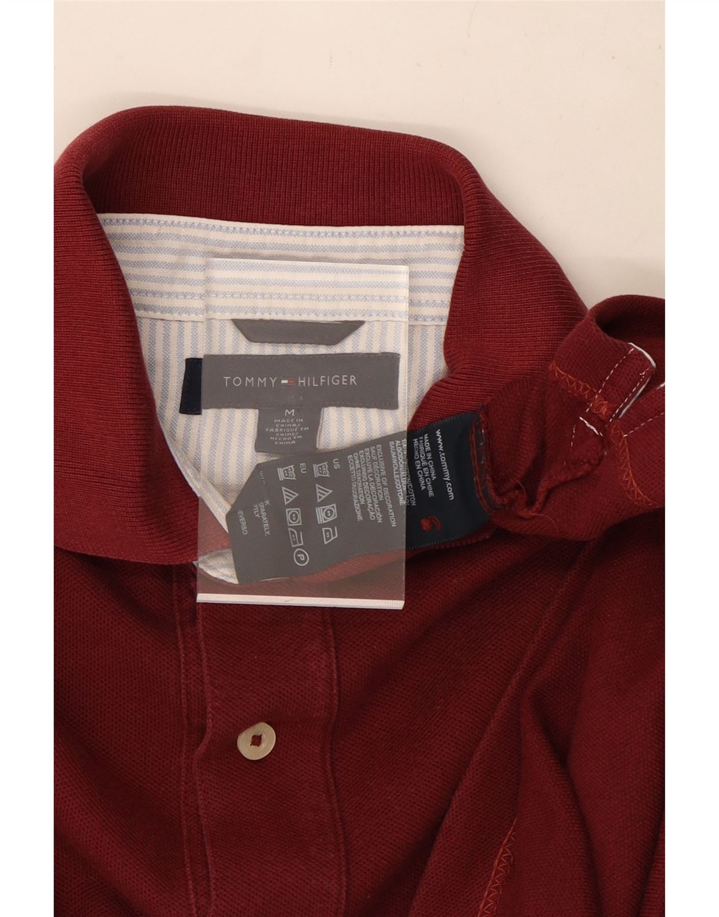 Tricou polo TOMMY HILFIGER pentru bărbați, bumbac burgundy mediu