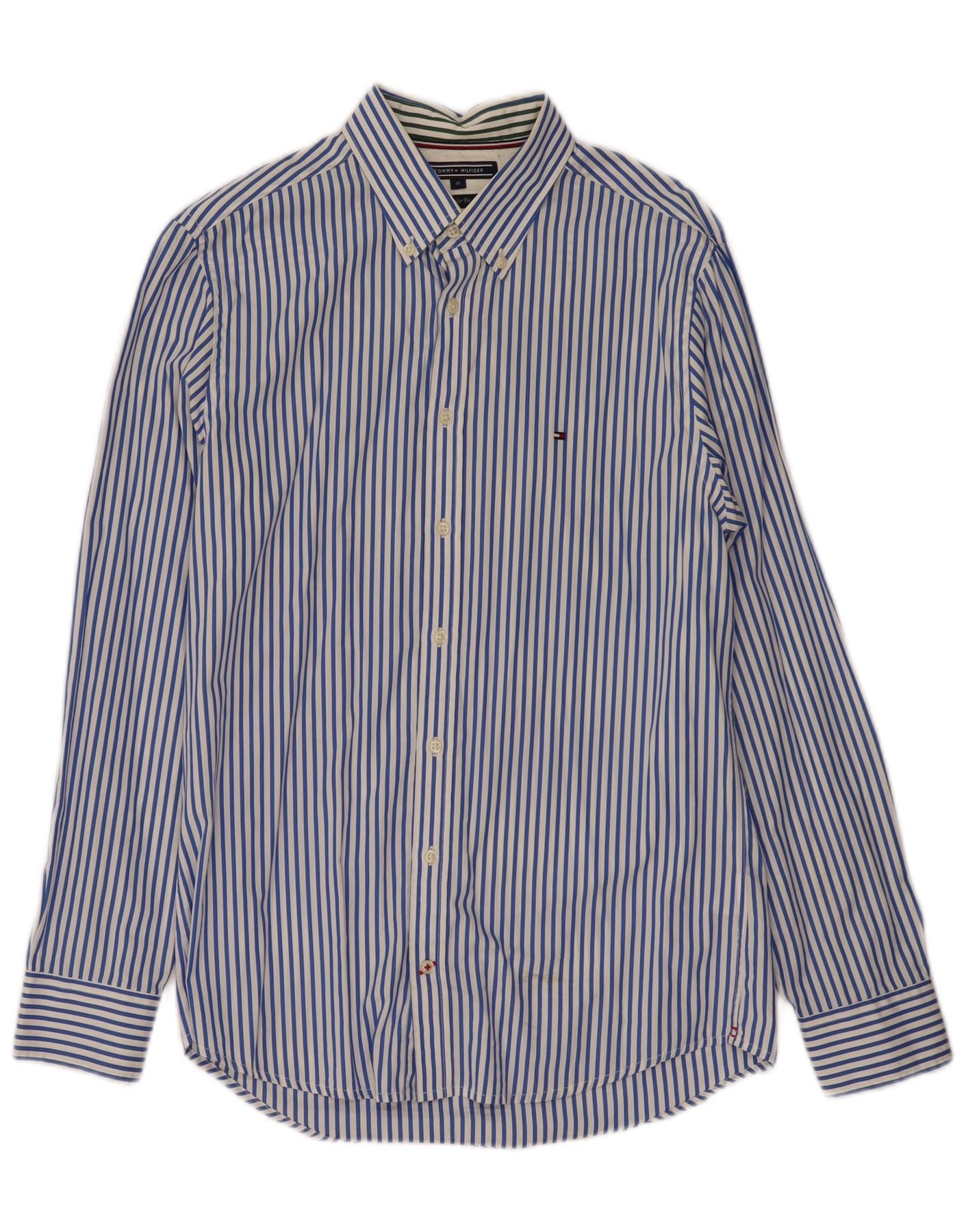 Cămașă TOMMY HILFIGER pentru bărbați, cu tăiere obișnuită, din bumbac cu dungi albastre medii
