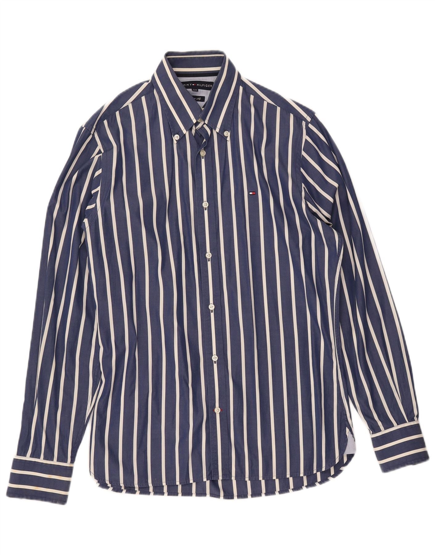 Cămașă pentru bărbați TOMMY HILFIGER, mică, bleumarin, bumbac cu dungi, anii 80