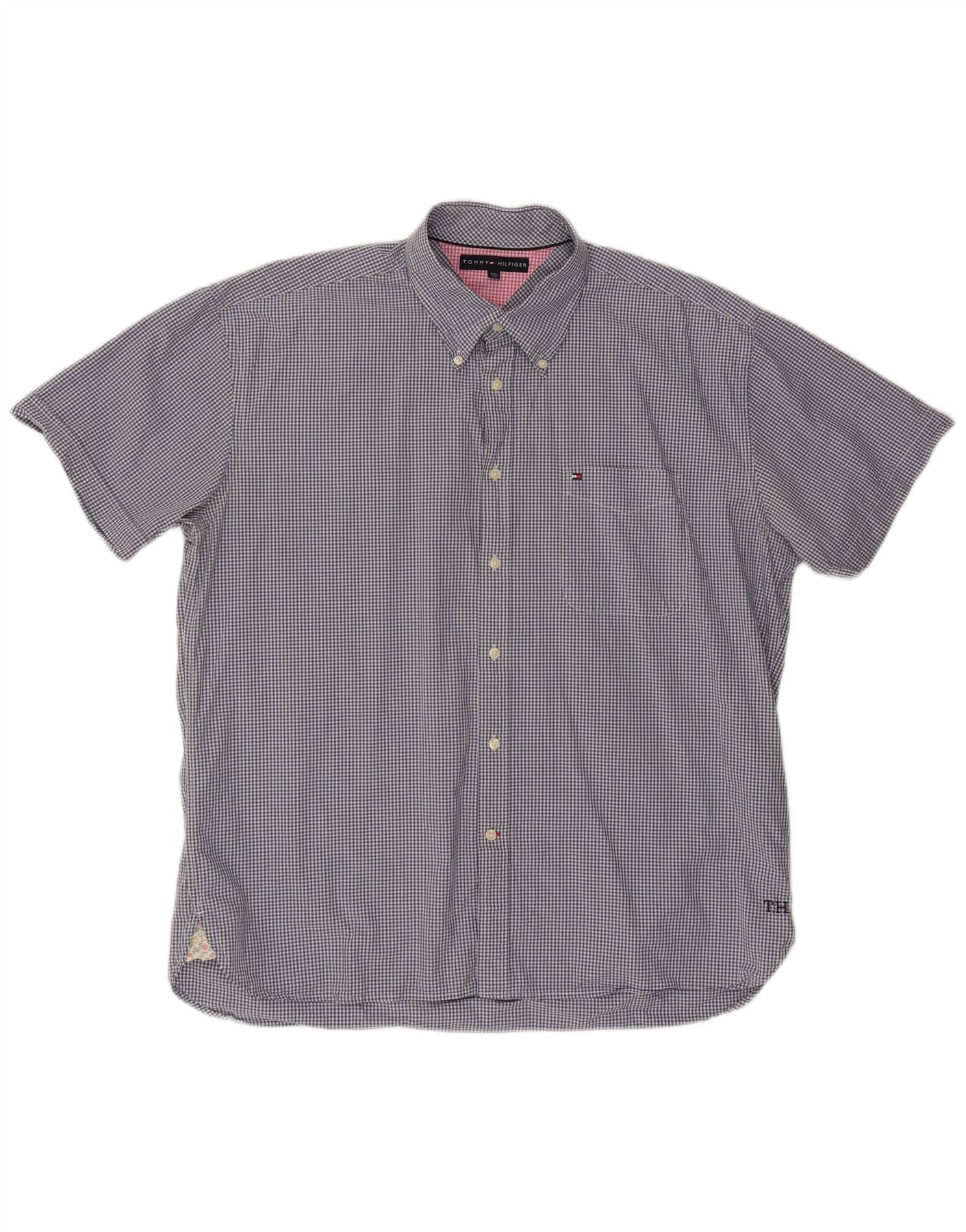 Cămașă cu mânecă scurtă TOMMY HILFIGER pentru bărbați, bumbac vichy albastru 2XL
