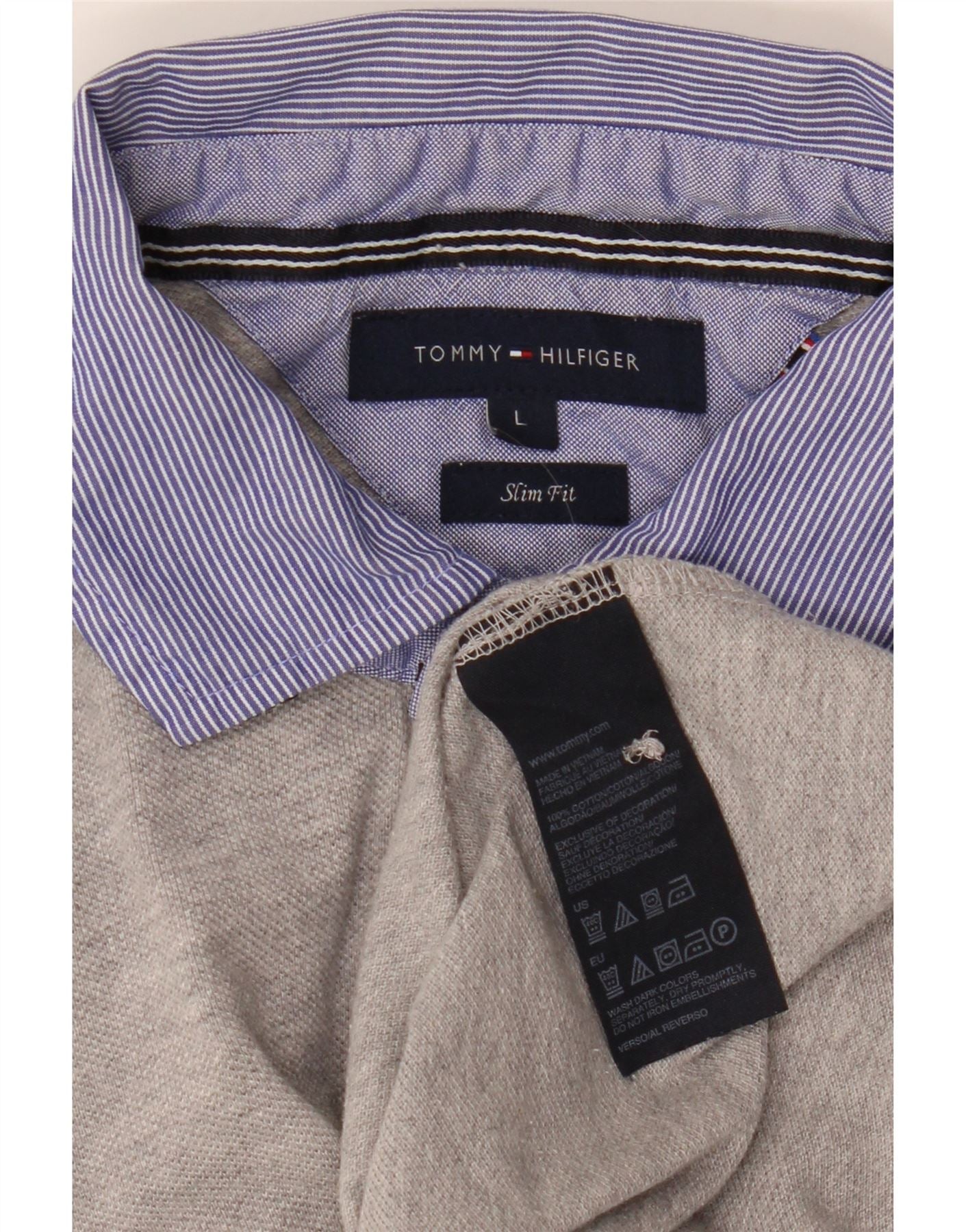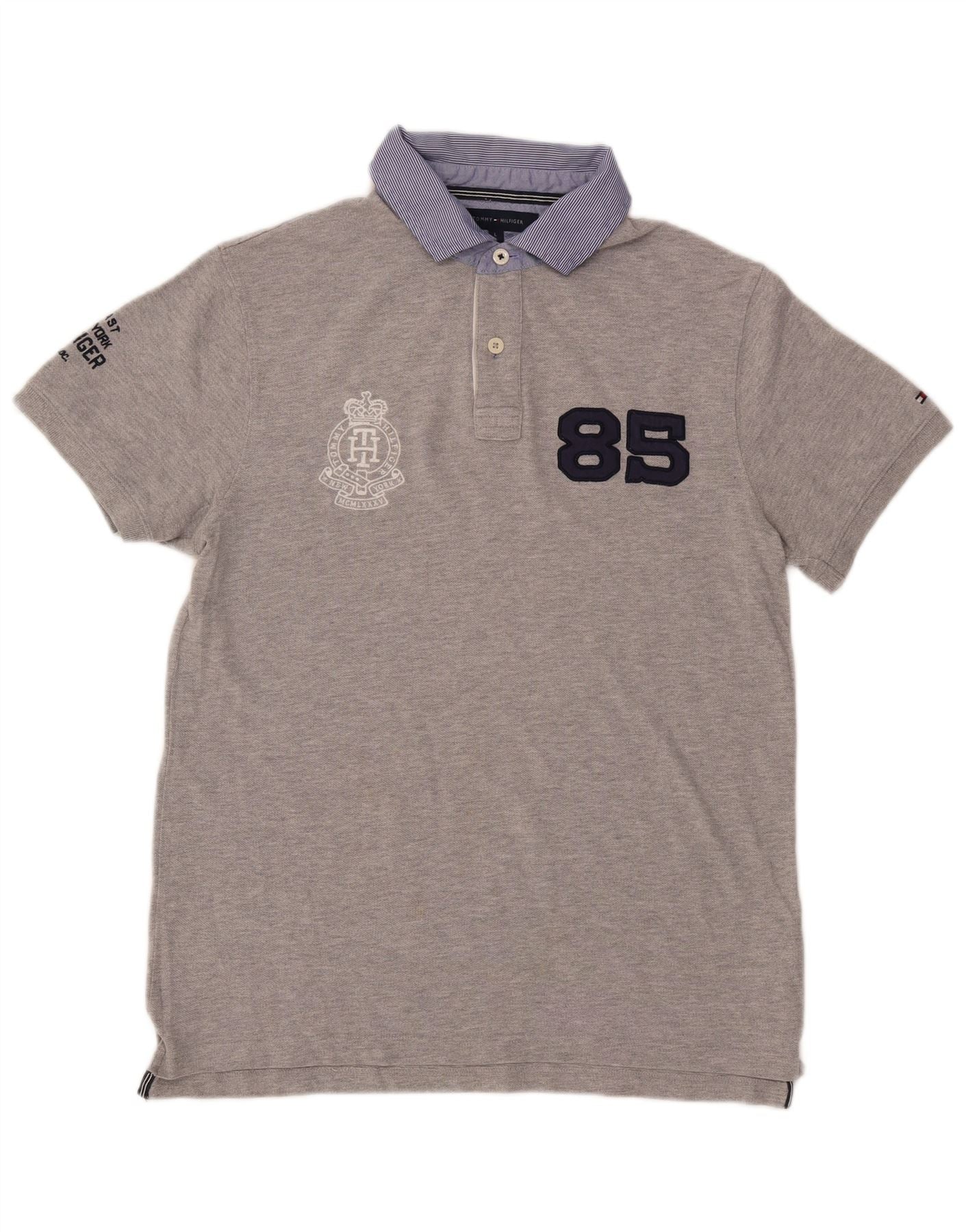 TOMMY HILFIGER Cămașă polo cu grafică slim pentru bărbați, bumbac gri mare