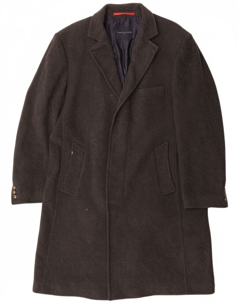 TOMMY HILFIGER Mens Tailored Overcoat UK 40 Large Grey Herringbone Wool