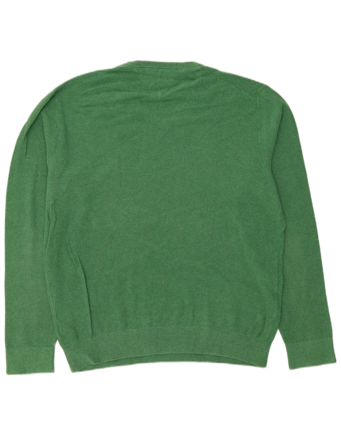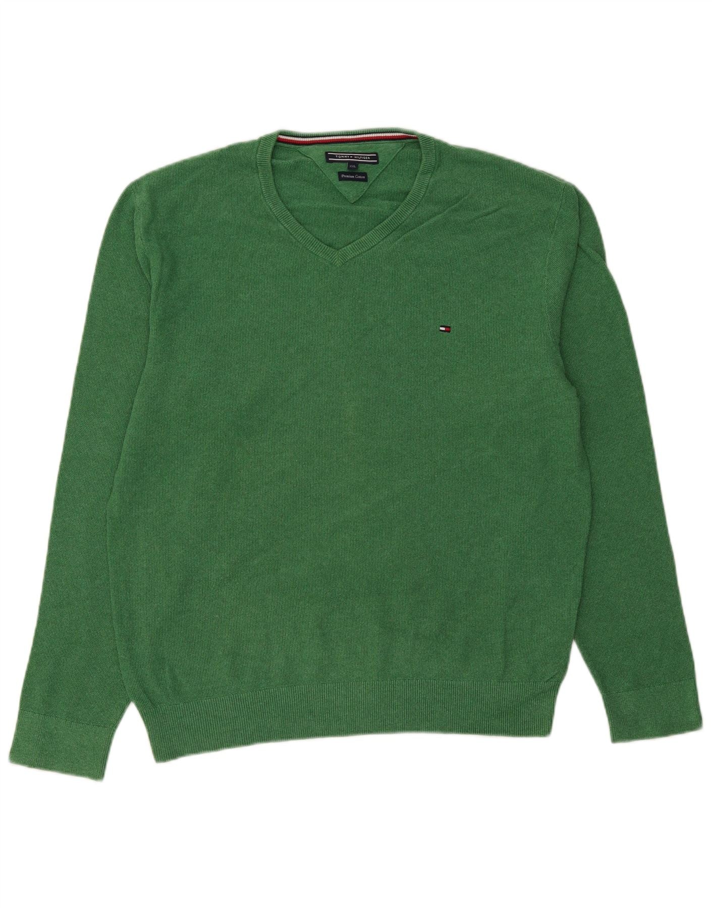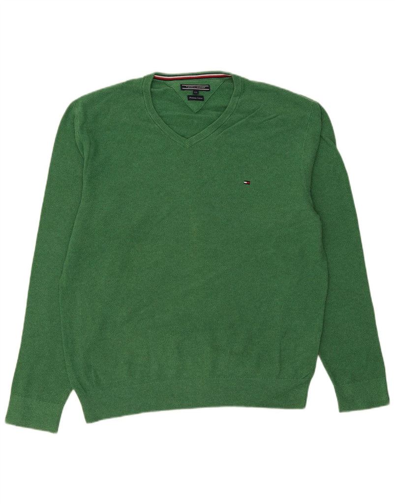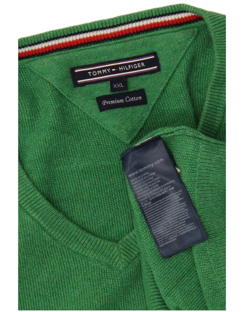 TOMMY HILFIGER Mens V-Neck Jumper Sweater 2XL Green Cotton
