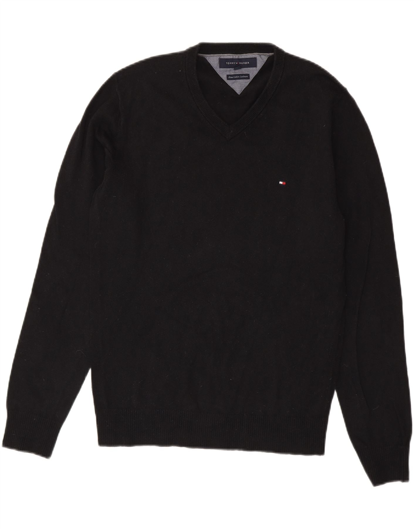 TOMMY HILFIGER Pulover cu decolteu în V pentru bărbați, bumbac mic, negru