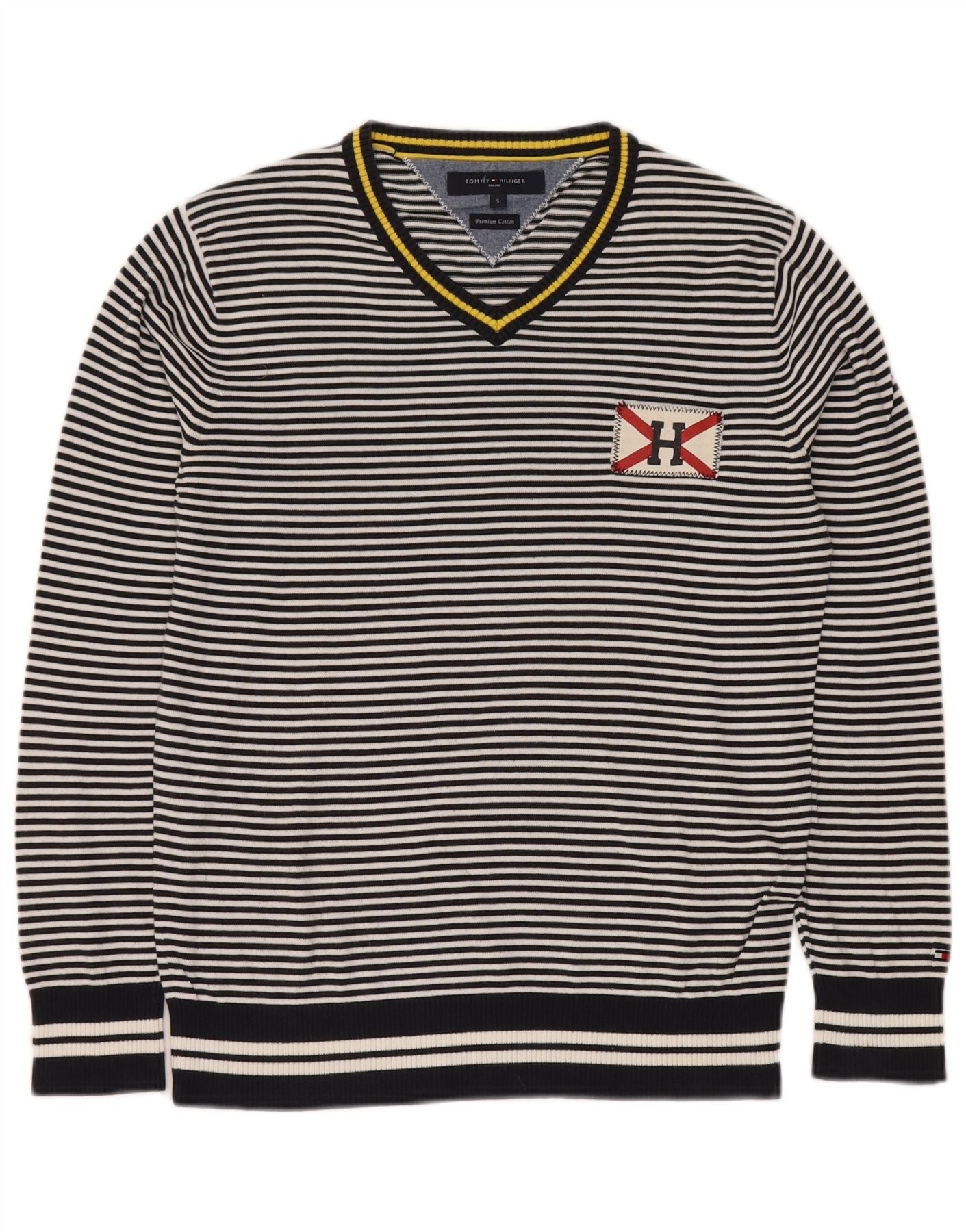 TOMMY HILFIGER Pulover cu decolteu în V pentru bărbați, bumbac cu dungi mici, bleumarin