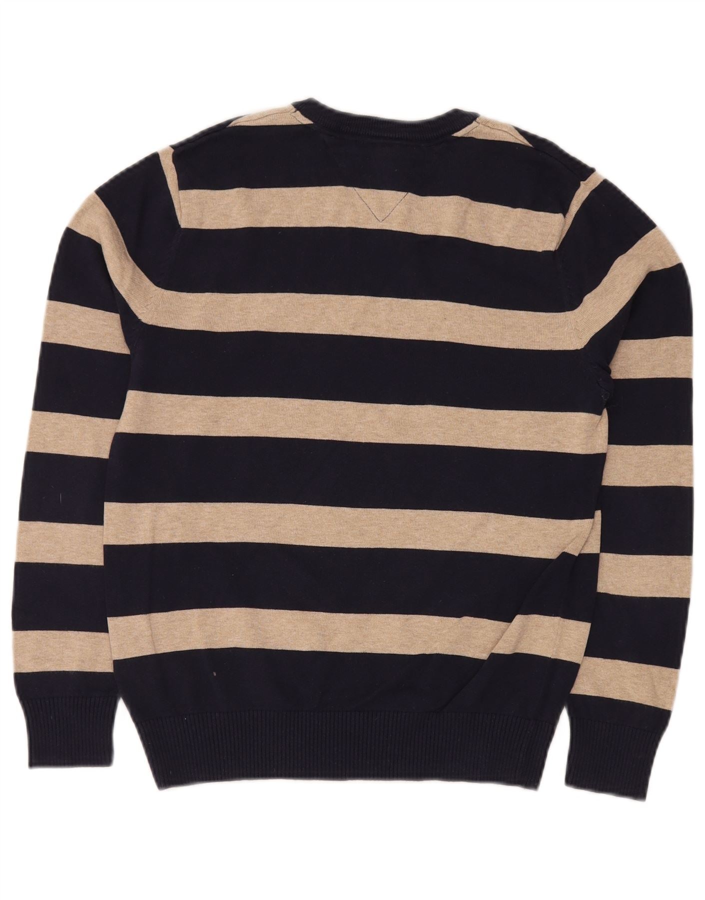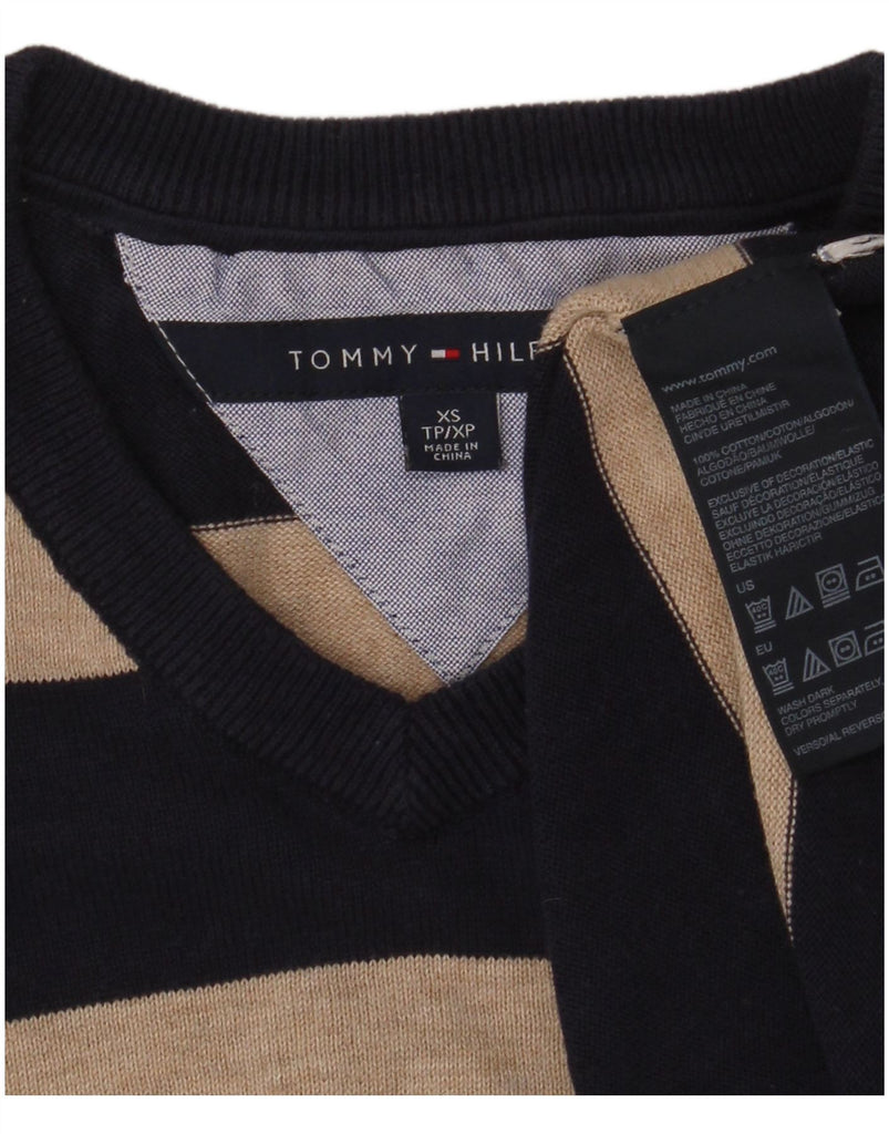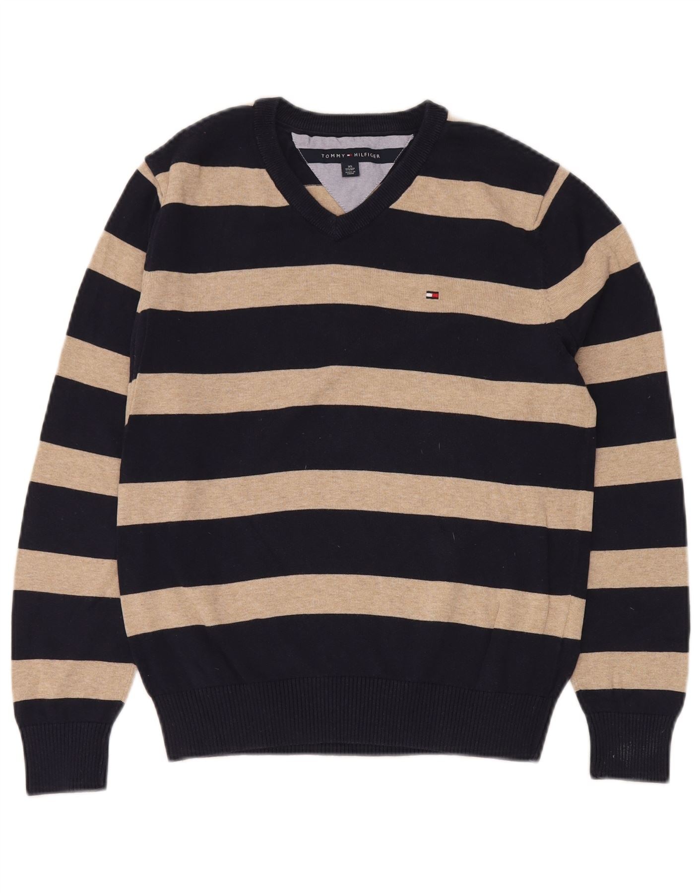 TOMMY HILFIGER Pulover cu decolteu în V pentru bărbați XS bumbac cu dungi albastru bleumarin