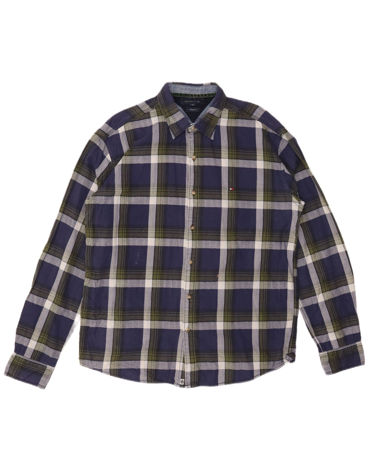 Cămașă pentru bărbați TOMMY HILFIGER Vintage Fit Flannel XL, bumbac cu carouri bleumarin