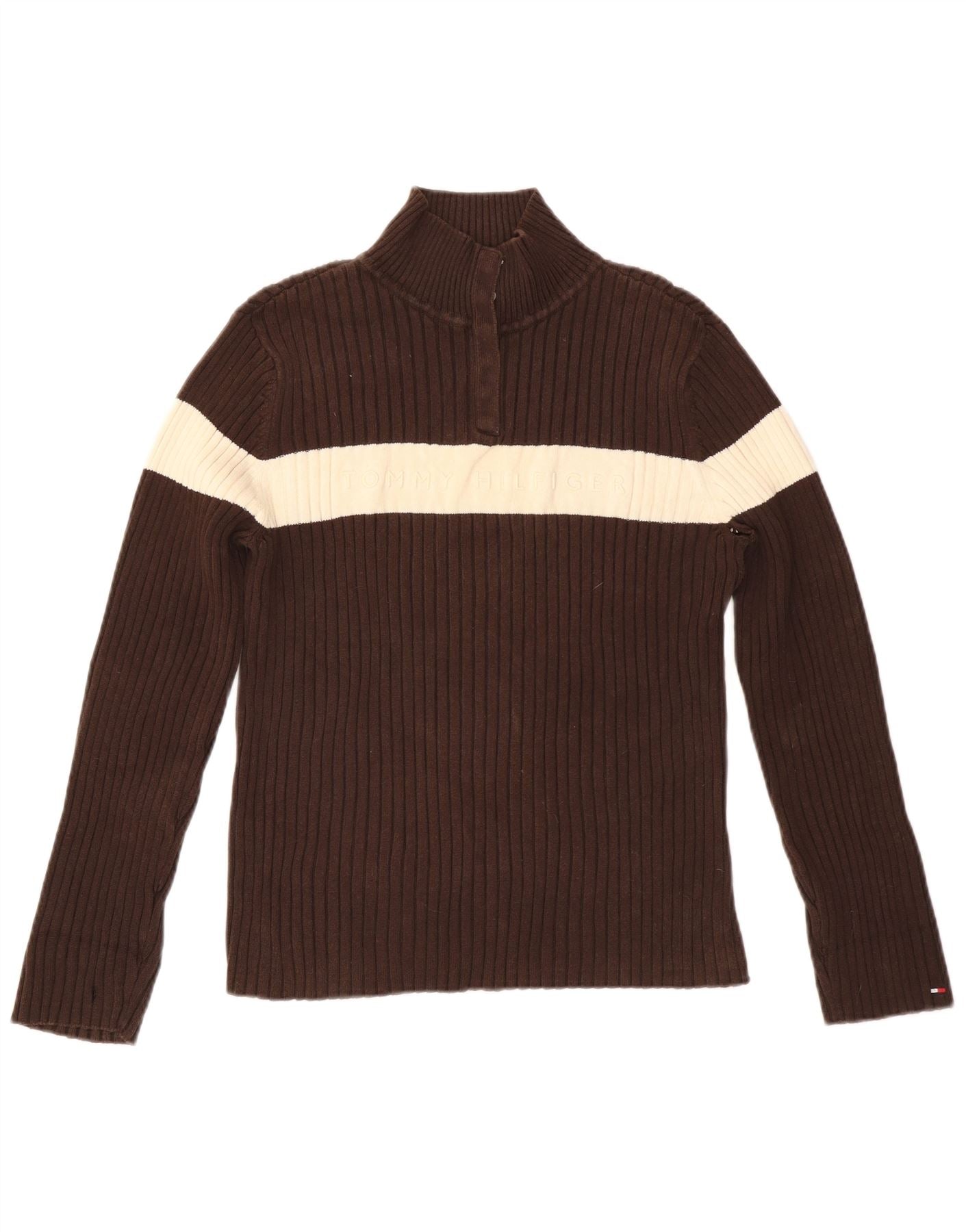 Pulover pentru femei TOMMY HILFIGER Pulover cu gât cu nasturi UK 18 XL Maro