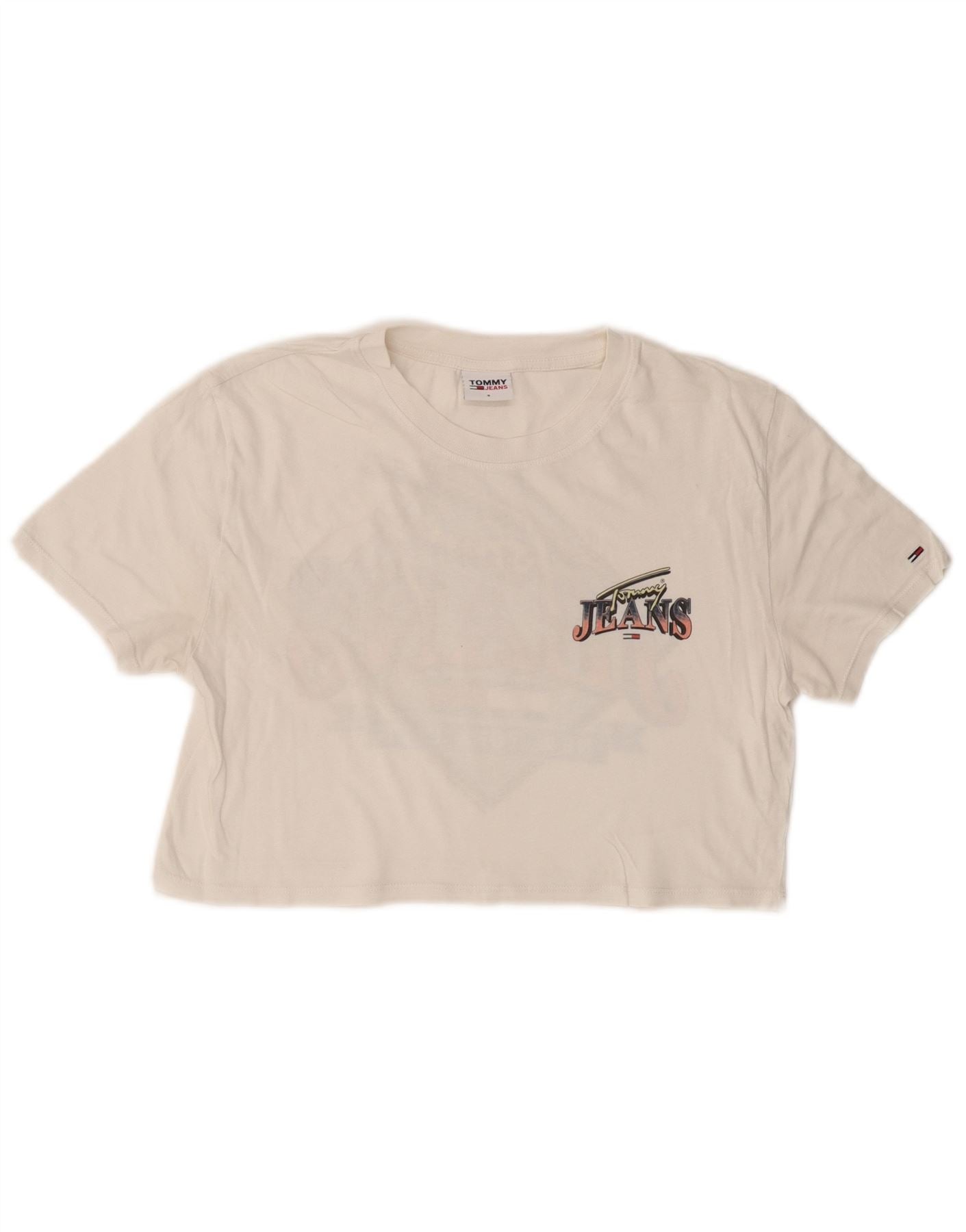 TOMMY HILFIGER Tricou cu grafic crop pentru femei Top UK 10 Small White