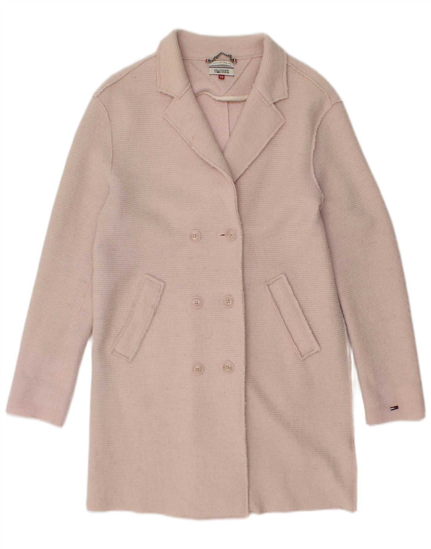 TOMMY HILFIGER Womens Double Breasted Coat UK 6 XS Pink Polyester