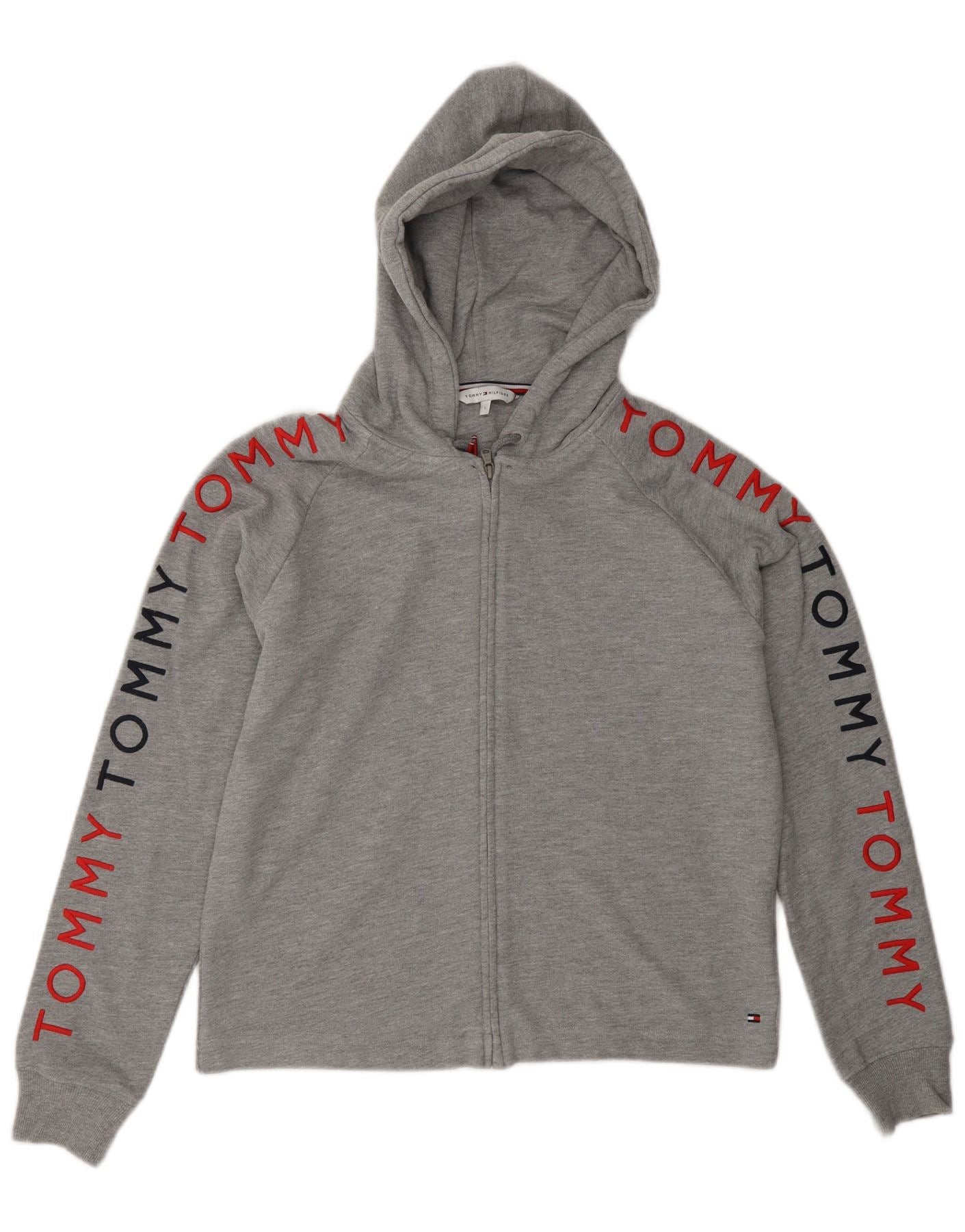 TOMMY HILFIGER Pulover cu capota cu fermoar cu grafic pentru femei UK 10 mic bumbac gri