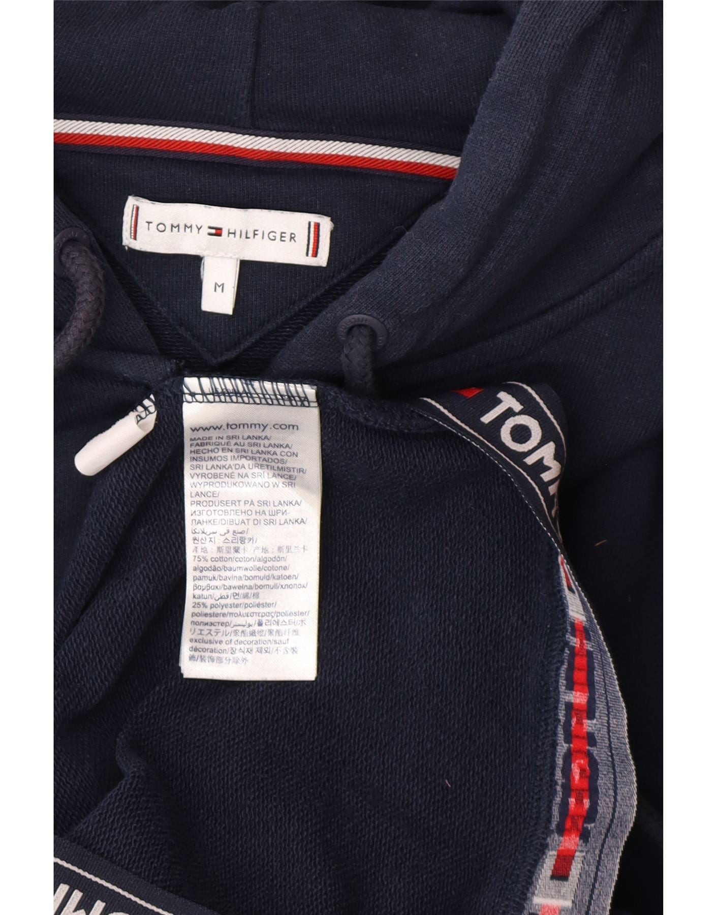 TOMMY HILFIGER Pulover cu capota cu fermoar grafic pentru femei UK 12 Medium Bleumarin
