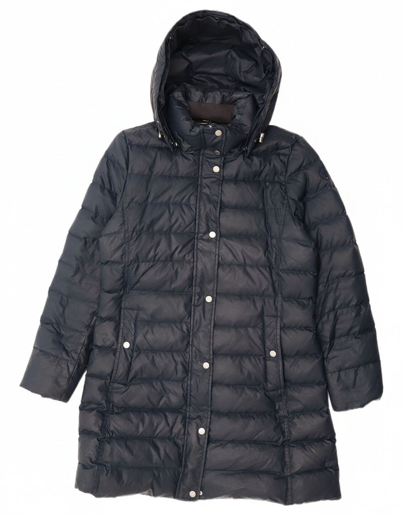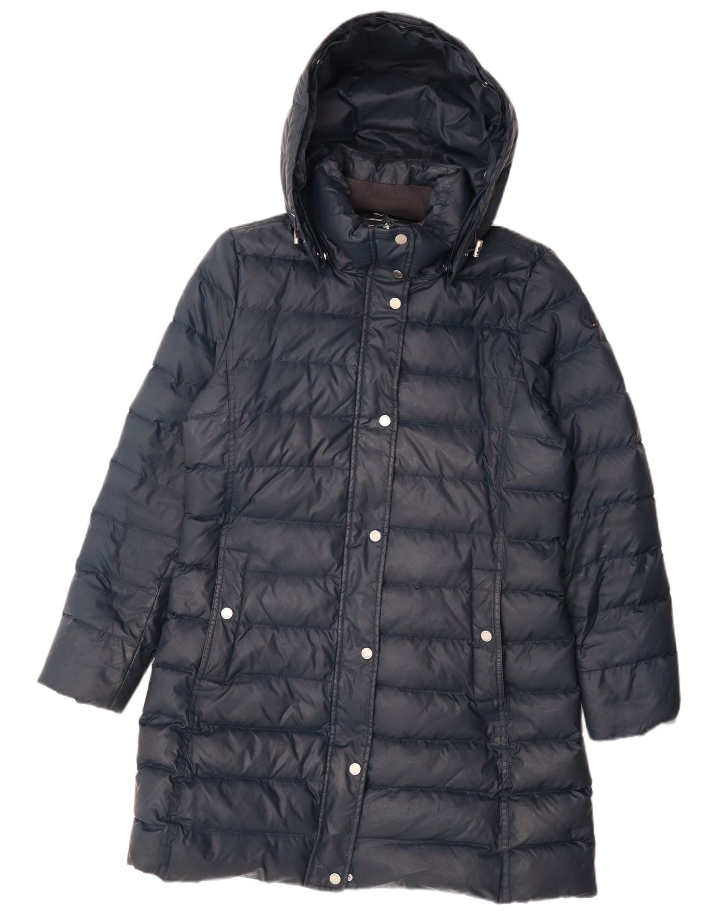 TOMMY HILFIGER Womens Hooded Padded Coat UK 14 Large Navy Blue Polyester